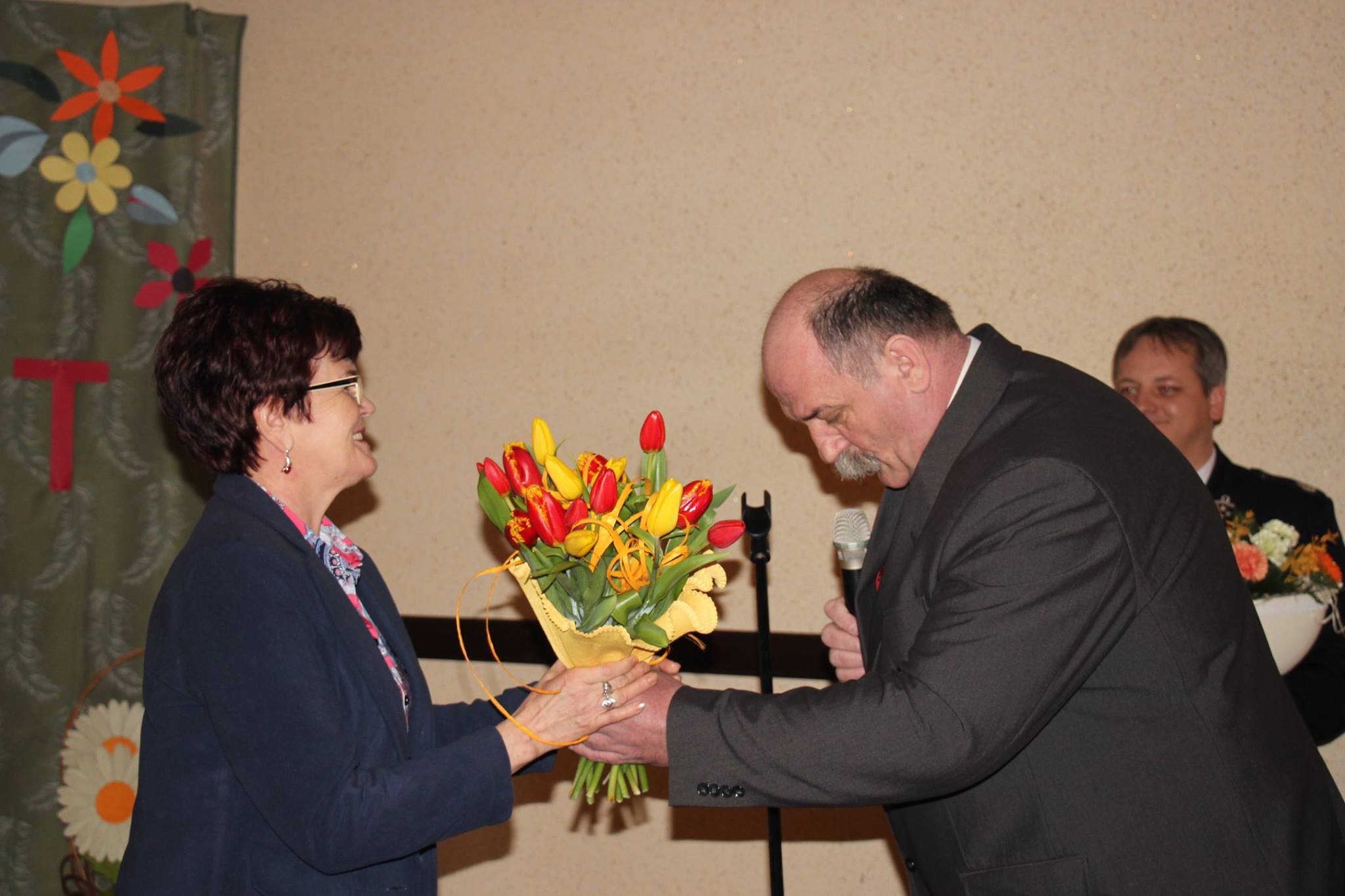 Panie ze Zbytkowa również świętowały Dzień Kobiet w sali OSP. Z życzeniami przybyli Panowie. Przewodniczący Rady Miejskiej Czesław Greń, Marek Omozik Prezes OSP Zbytków, Bogusław Wawrzyczek, sołtys Zbytkowa i Tadeusz Rucki, gawędziarz z Koniakowa. Panie mogły liczyć również na obsługę mężczyzn, którzy przygotowali dla nich poczęstunek. W spotkaniu wzięła również udział Burmistrz Strumienia, Anna Grygierek.