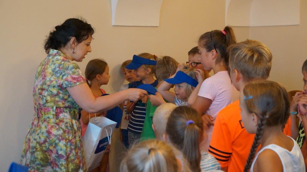 Relację z tych ciekawych wakacji dzieci przekazały Burmistrz Strumienia Annie Grygierek wręczając własnoręcznie przygotowany upominek. Na pamiątkę aktywnie spędzonego czasu dzieci otrzymały daszki i zapewnienie, że półkolonie na hali sportowej będą organizowane również w przyszłym roku.