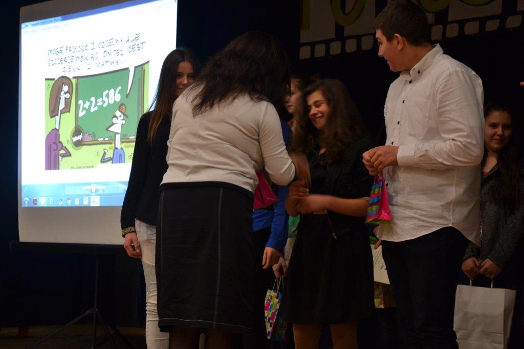 I miejsce dla: Jakuba Szczypki, Alicji Lebioda, Hanny Drapisz oraz Wiktori Pryszcz uczniów Gimnazjum w Drogomyślu.