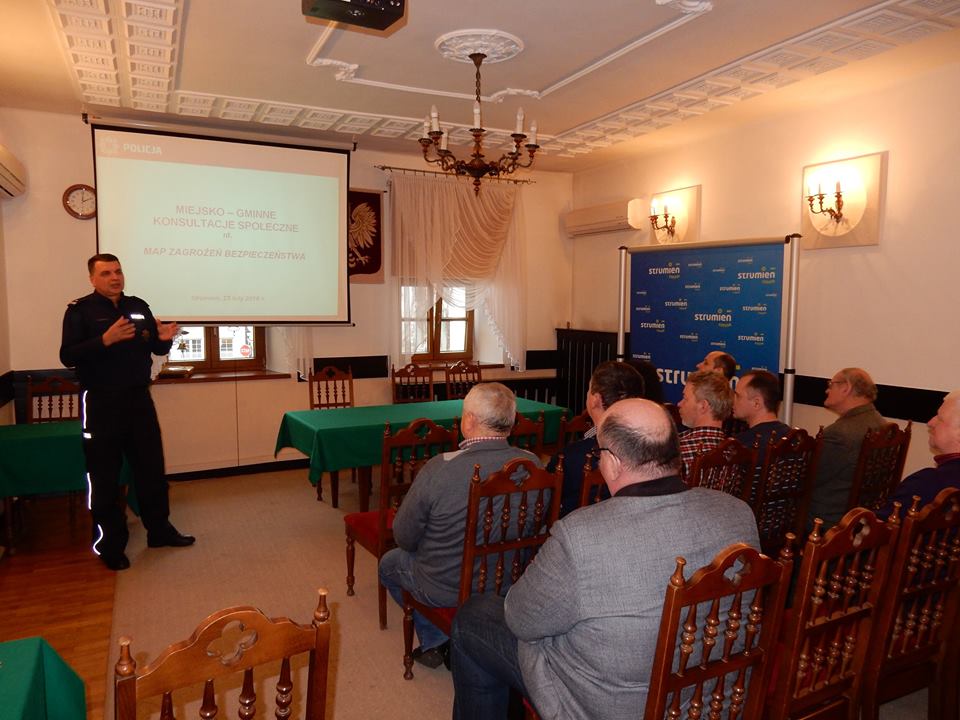 Policja przeprowadza konsultacje społeczne w sprawie utworzenia w całej Polsce Krajowej Mapy Zagrożeń Bezpieczeństwa. Spotkanie dotyczące utworzenia tej mapy odbyły się 26 lutego w sali sesyjnej Urzędu Miejskiego w Strumieniu.