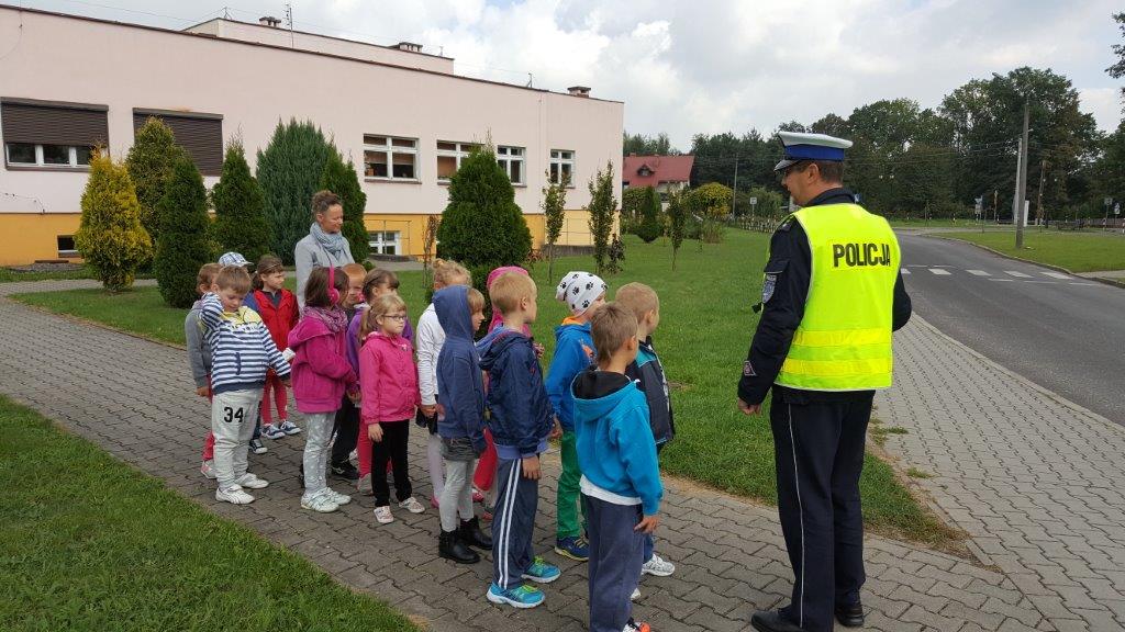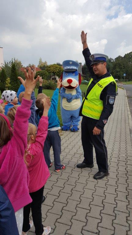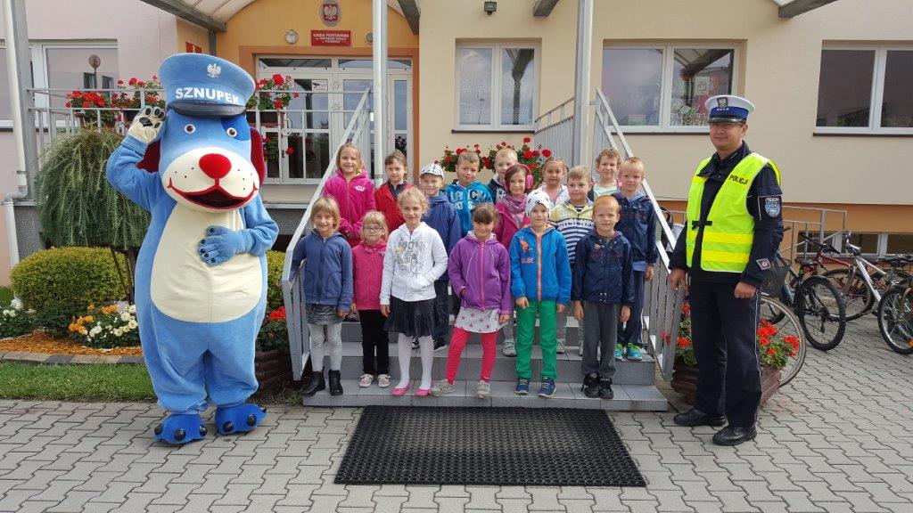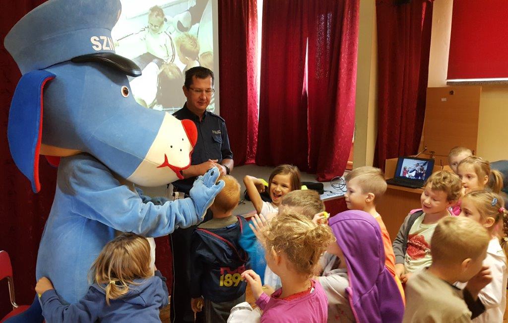 Uczniowie klas I-III Szkoły Podstawowej im. Powstańców Śląskich w Strumieniu po raz kolejny mieli okazję uczestniczyć w lekcjach wychowania komunikacyjnego. Zajęcia prowadził policjant z Wydziału Ruchu Drogowego KP w Cieszynie; aspirant sztabowy Grzegorz Hanzel. Pierwszoklasiści uczyli się dodatkowo prawidłowego przechodzenia  przez "zebrę" w towarzystwie słynnej policyjnej maskotki Sznupka.  Wszystkie dzieci poznały najważniejsze zasady bezpieczeństwa na drodze zgodnie z tematem spotkania "Bezpieczna droga do szkoły i domu". Policjant zachęcał do ostrożności, noszenia elementów odblaskowych na plecakach, tornistrach, ubraniu. Nie zabrakło sympatycznych uścisków łapy Sznupka oraz kolorowych gadżetów odblaskowych i pamiątkowych zdjęć.
