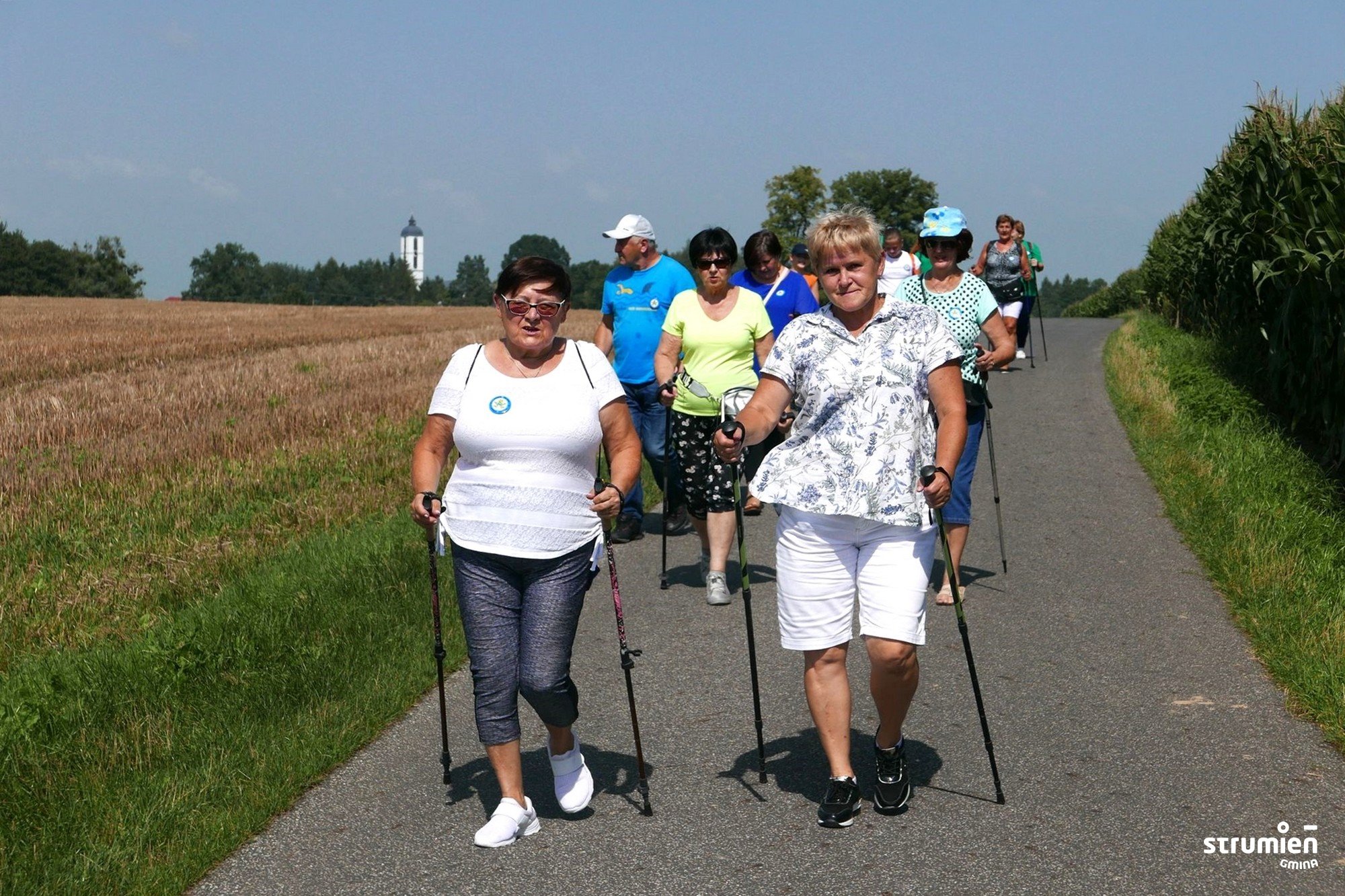 Z inicjatywy Koła Gospodyń Wiejskich w Pruchnej odbył się marsz nordic walking malowniczymi zakątkami sołectwa. Zanim jednak grupa wyruszyła w trasę z kijkami wzięła udział w rozgrzewce, którą poprowadził Pan Stanisław Świtała. Po 5 km marszu na mecie na uczestników czekał wzmacniający siły gulasz przygotowany przez panie z KGW w Pruchnej. O słodki poczęstunek zadbały również inne koła KGW oraz członkinie Macierzy Ziemi Cieszyńskiej.