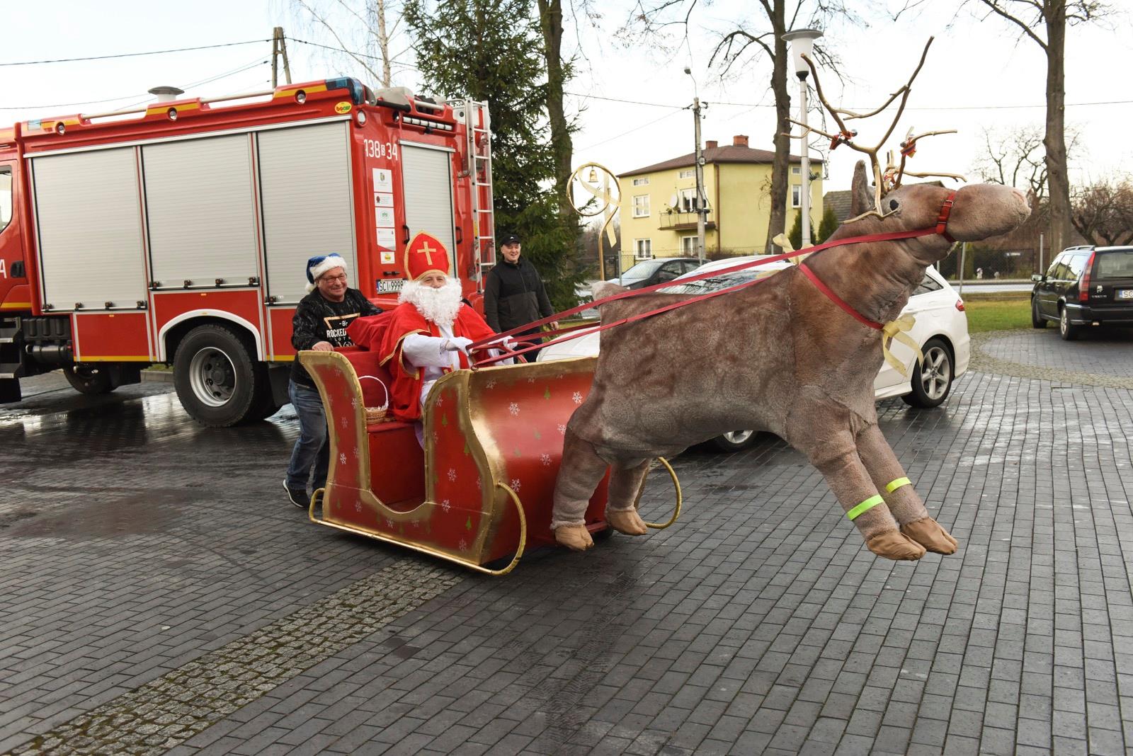 Magia Bożego Narodzenia ogarnęła dzieci w Bąkowie, gdy w sobotę 8 grudnia na pięknych saniach przyjechał do nich Święty Mikołaj. Razem z nim zjawił się jego niezastąpiony towarzysz – renifer. Ważny gość także w tym roku nie zawiódł dzieci i każdemu wręczył upominek. Uśmiechów na twarzach było co nie miara.