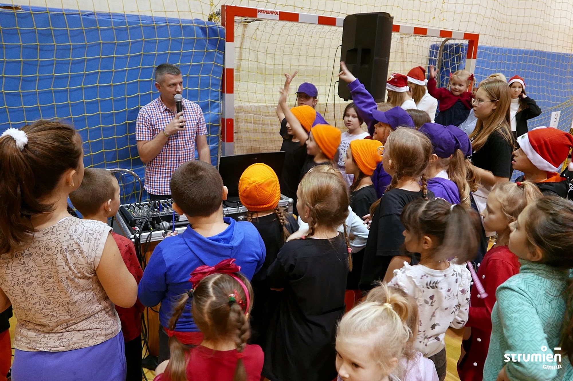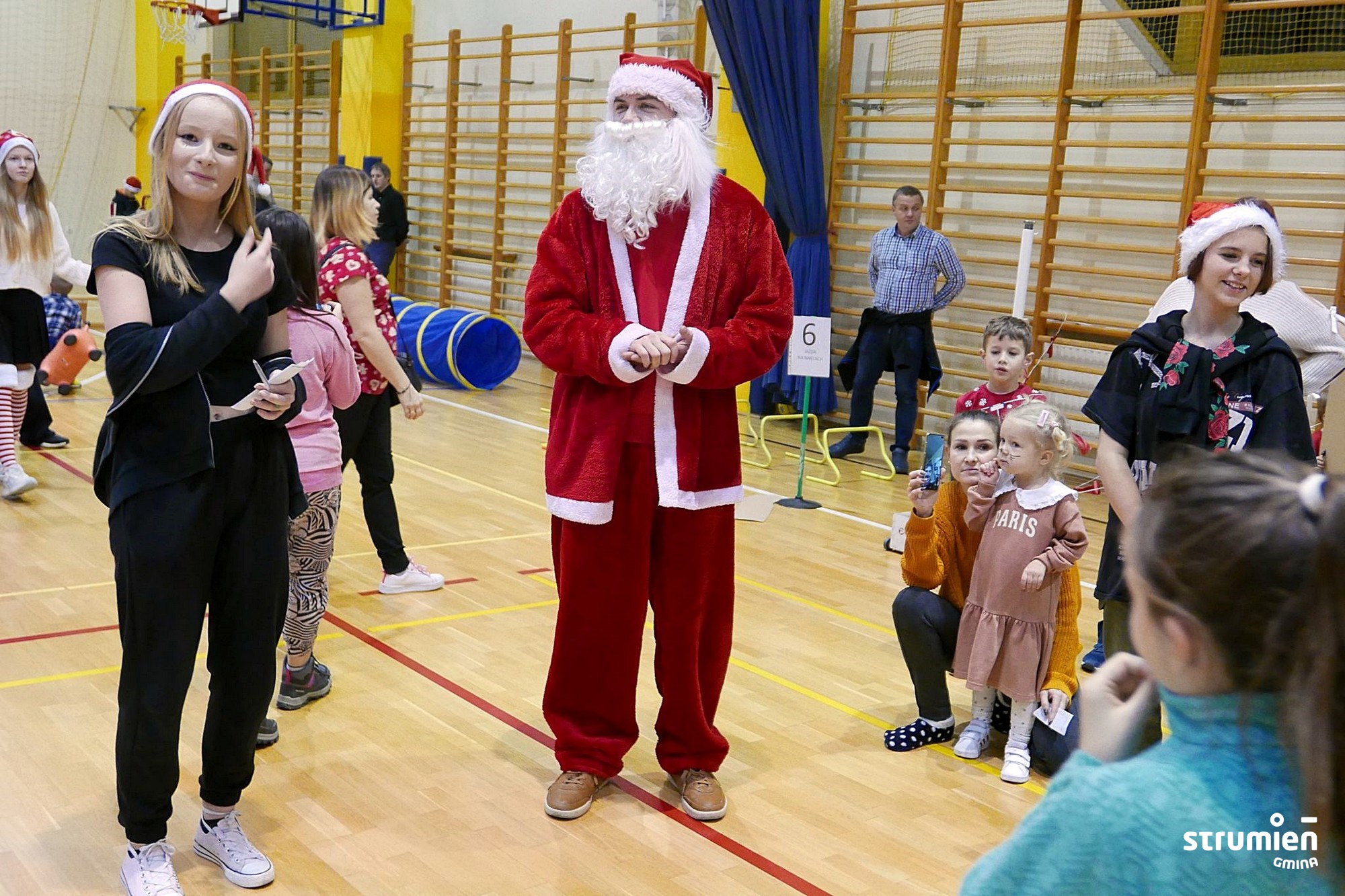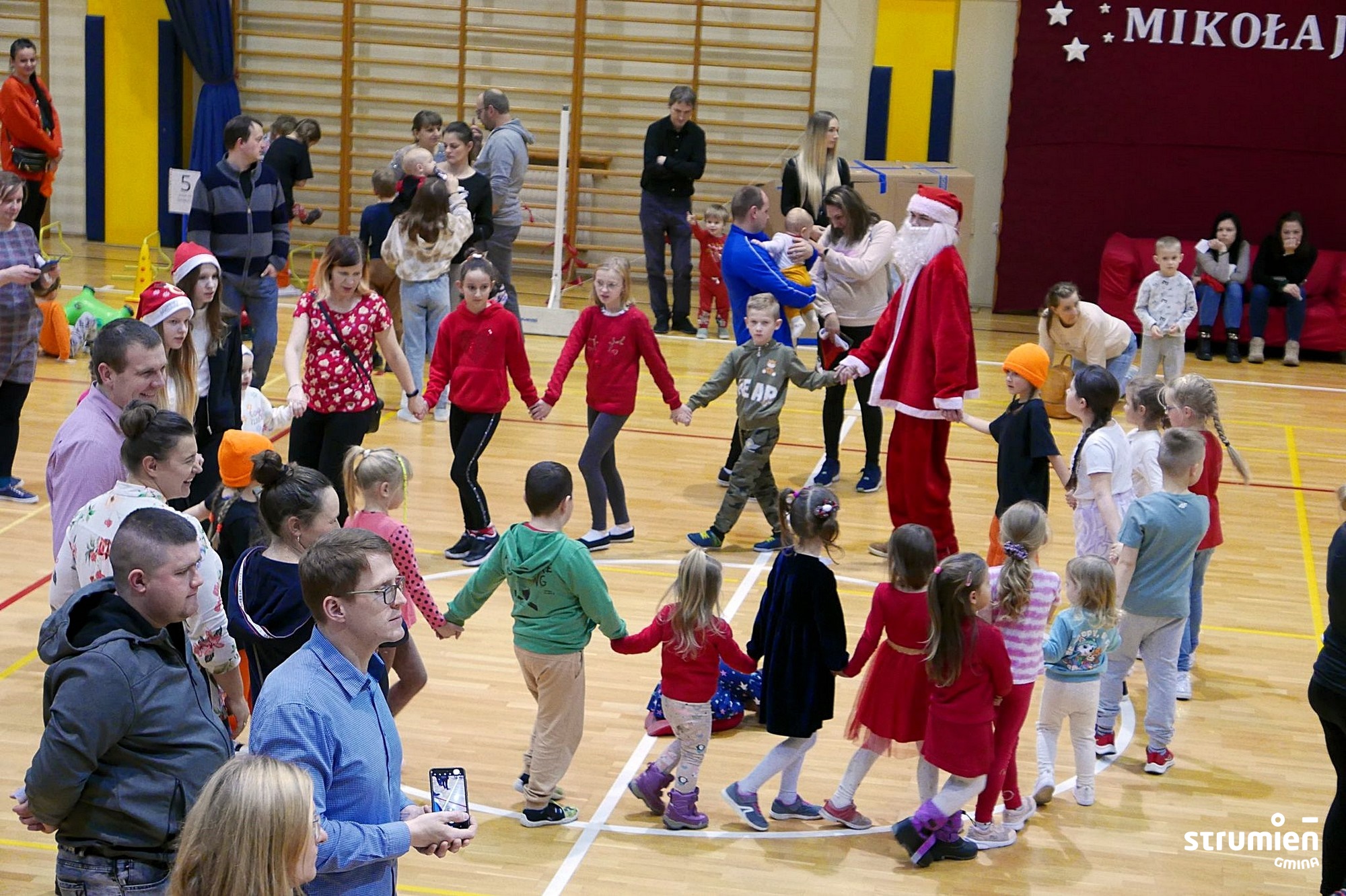 6 grudnia w Hali Sportowej najmłodsi mieszkańcy wzięli udział w aktywnym, sportowym spotkaniu z Mikołajem, który najpierw towarzyszył dzieciom w zabawach i sportowych wyzwaniach, a następnie obdarował je upominkami. Razem z dziećmi bawili się rodzice oraz dziadkowie. Dzieciom podczas mikołajkowych zabaw towarzyszyła Burmistrz Strumienia Anna Grygierek.