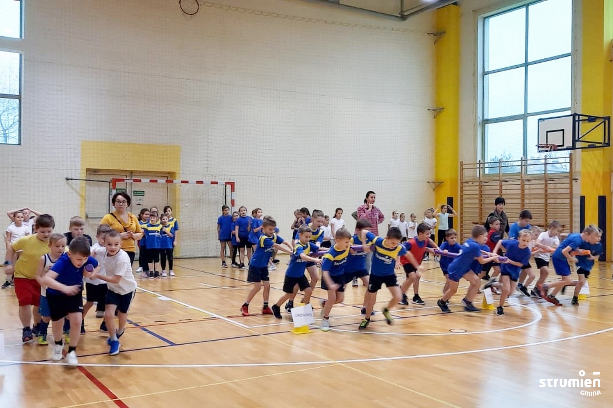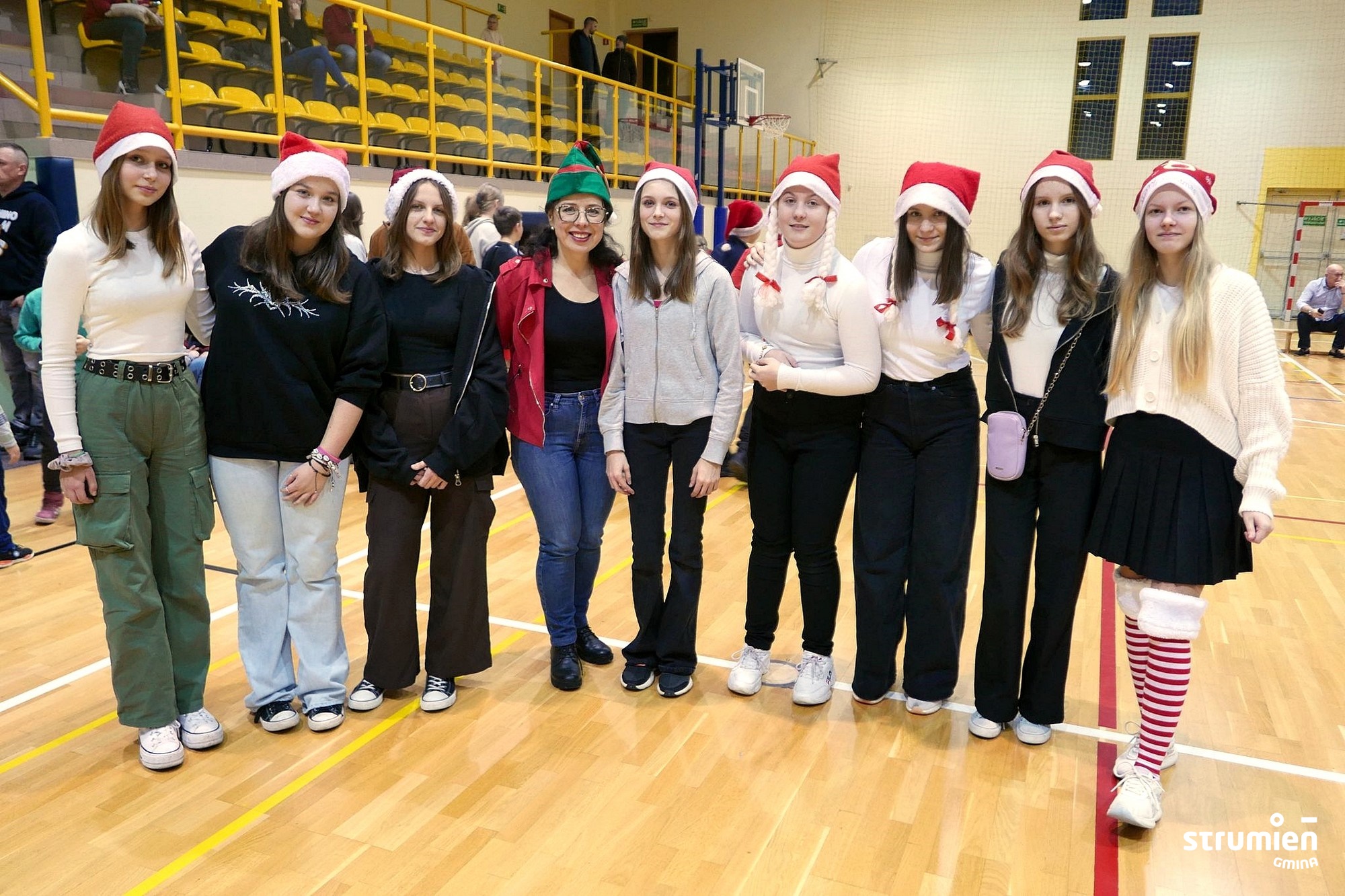 W kolejnym dniu zespoły z wszystkich gminnych szkół wzięły udział w Mikołajkowym Turnieju Sportowym dla Szkół. Uczniowie startowali w różnych konkurencjach m.in. wyścigach rzędów, rzutach do celu, skokach w dal, czy przeciąganiu liny. Potyczki odbywały się w wesołej, świątecznej atmosferze. W tych zawodach nie liczyły się wyniki, najważniejsza była dobra zabawa i uśmiechnięte buzie małych sportowców. Na koniec każdy z uczestników otrzymał pamiątkowy medal z rąk Zastępcy Burmistrza Strumienia Magdaleny Suchanek-Kowalskiej. Drużyny nie wróciły do szkół z pustymi rękami, każda z nich przywiozła do placówki podarowany przez Świętego Mikołaja sprzęt sportowy.