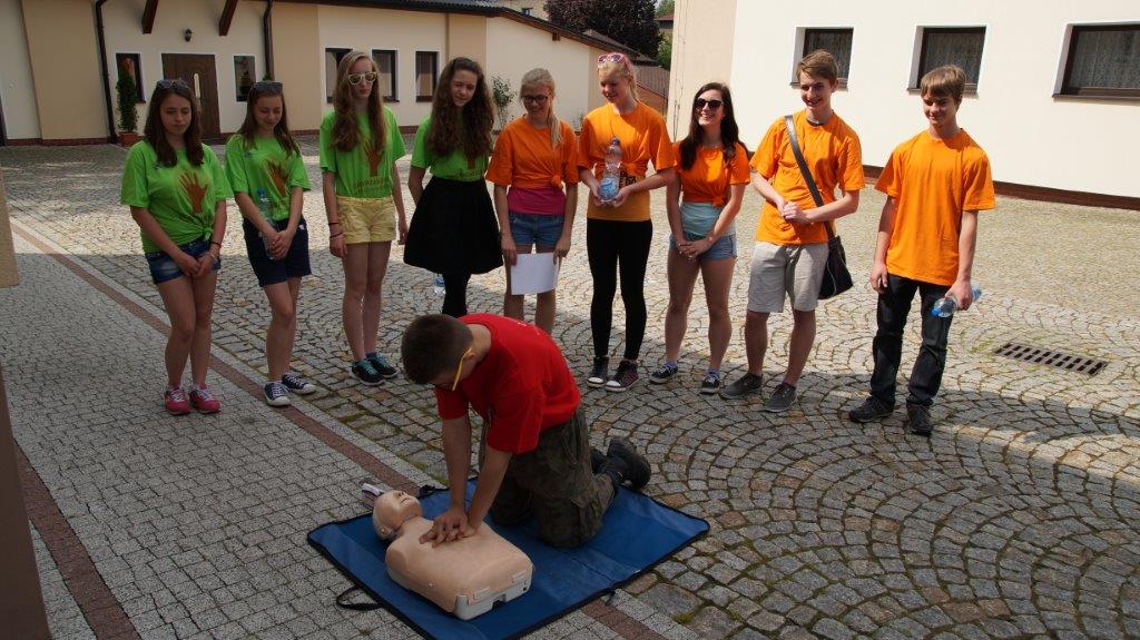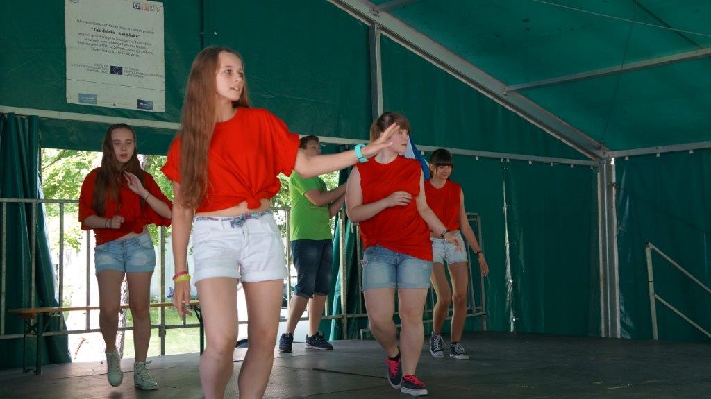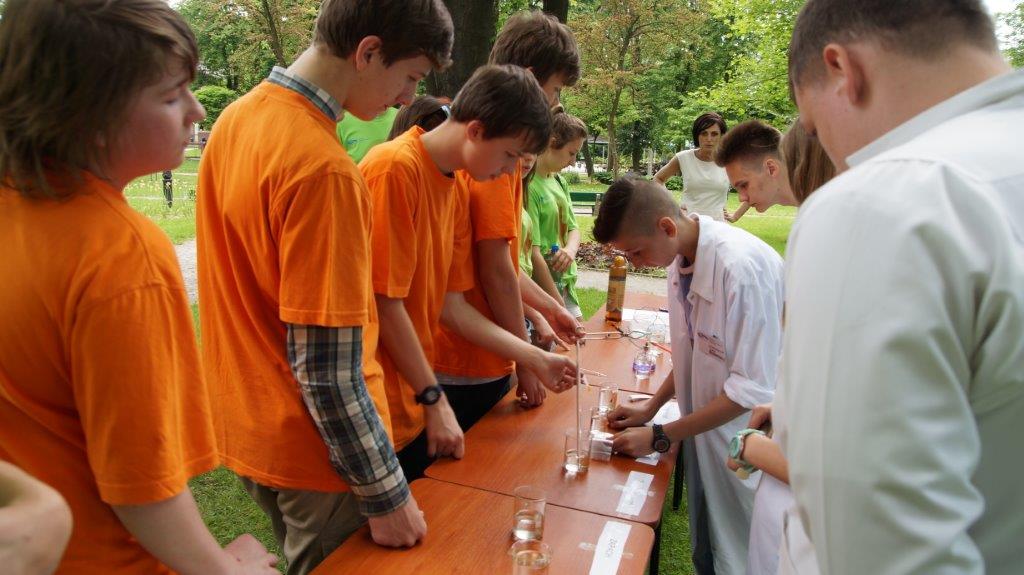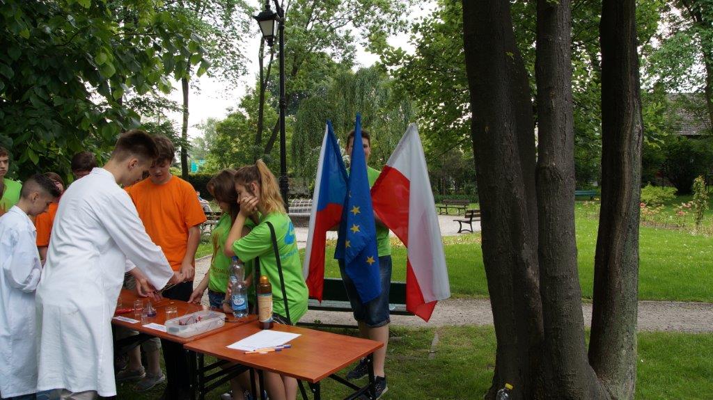 Punkt w Parku podzielony został na dwa stanowiska. Na jednym z nich młodzież, wykorzystując zasoby solankowe fontanny, dokonywała badań wody, oznaczając barwę, zapach, temperaturę, twardość wody, odczyn pH oraz przewodność. Na drugim stanowisku w rytm muzyki młodzież polska i czeska tańczyła zumbę.