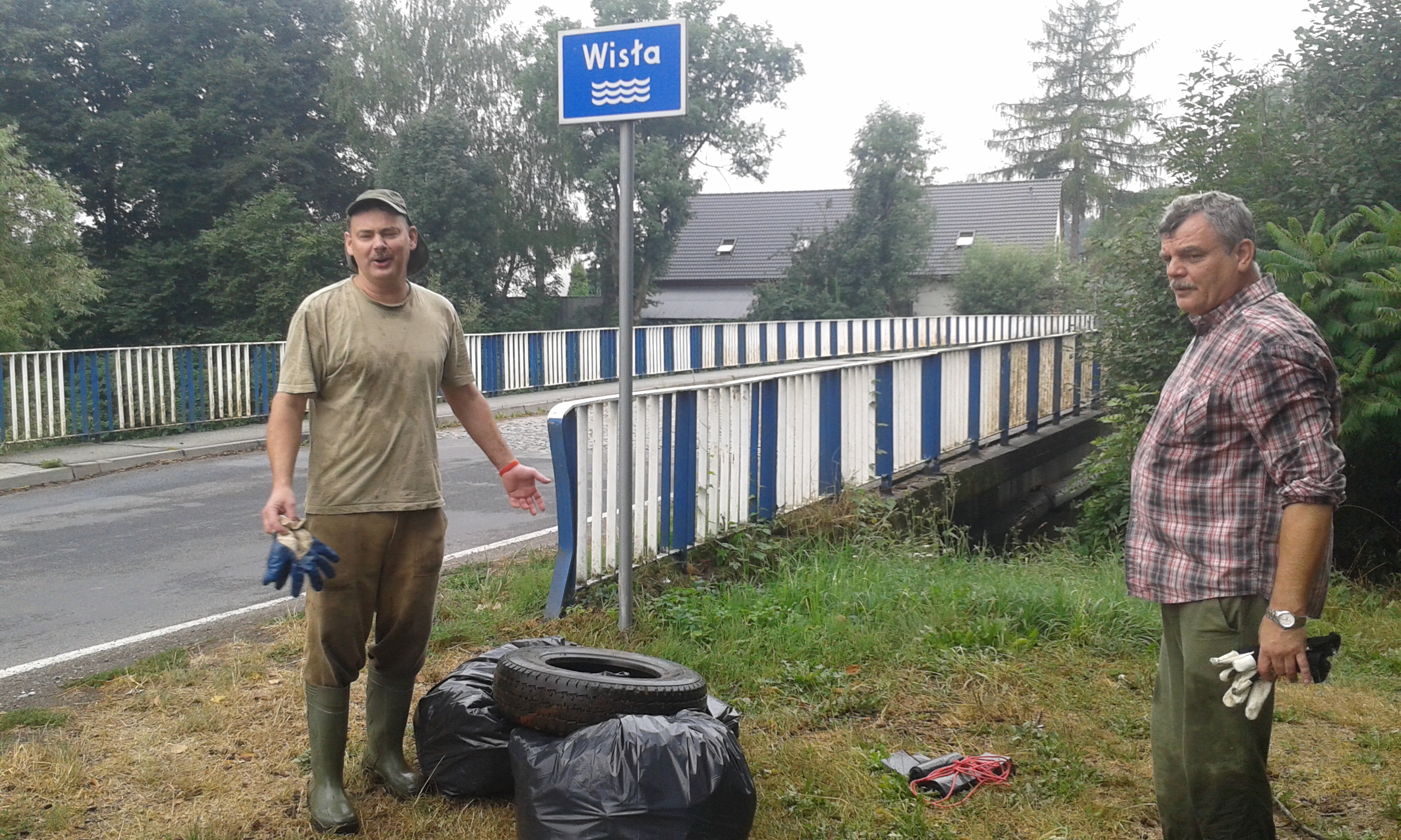 W dzisiejszy poranek - 17.08.2015r, korzystając z niezwykle niskiego stanu wody w rzece Wiśle, grupa ochotników: Sołtys Drogomyśla Zbigniew Podyma, Proboszcz Parafii ewangelickiej ks. Karol Macura i p. Jarosław Mazur wysprzątali dno rzeki na wysokości głównego mostu w miejscowości Drogomyśl.