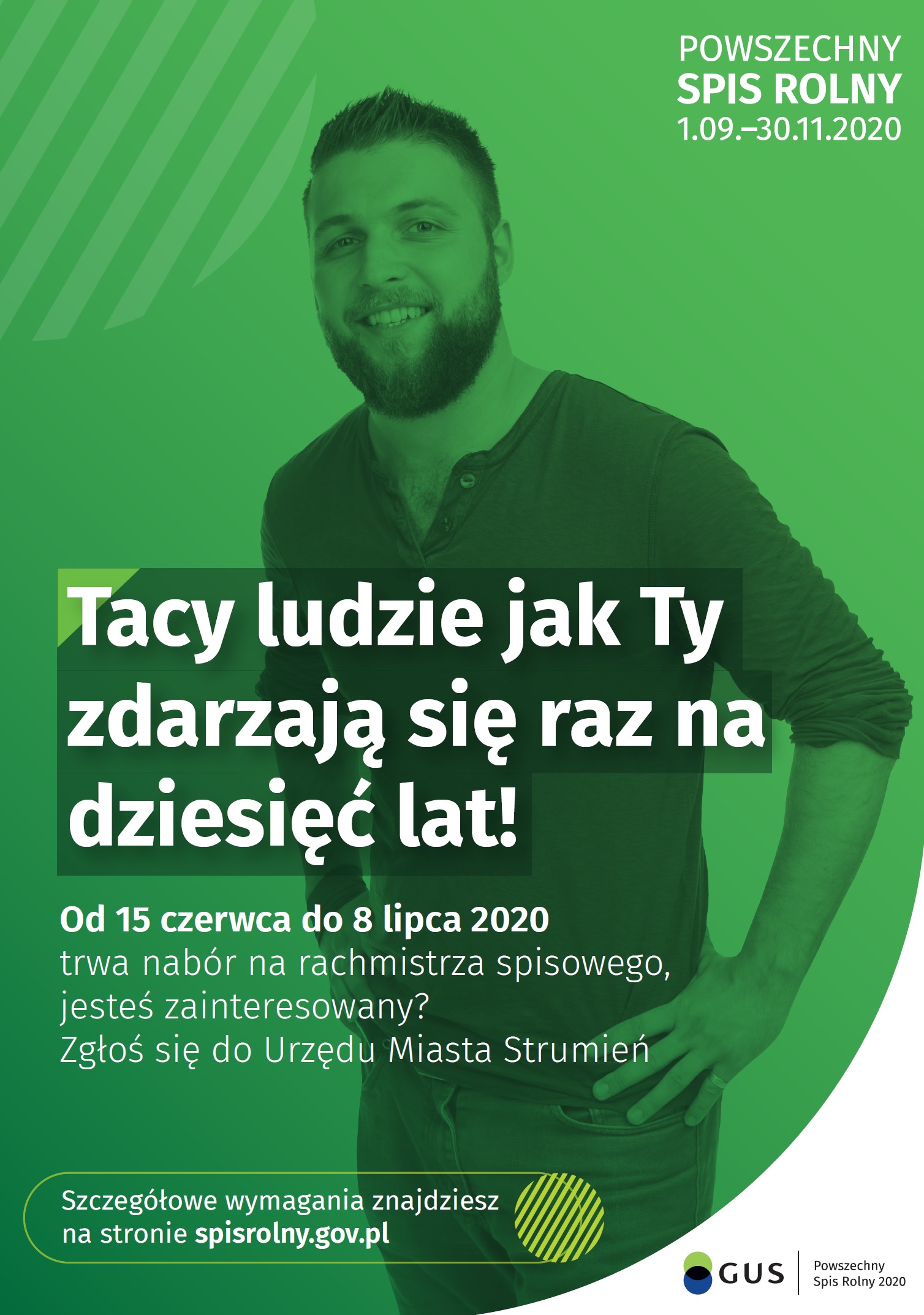 Burmistrz Strumienia - Gminny Komisarz Spisowy ogłasza otwarty i konkurencyjny nabór kandydatów na rachmistrzów terenowych do przeprowadzenia Powszechnego Spisu Rolnego na terenie Gminy Strumień  w 2020 r.