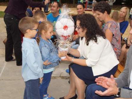 Przed licznie zgromadzoną publicznością przedszkolaki z różnych grup wiekowych zaprezentowały swoje talenty za co otrzymały gromkie brawa, po czym Burmistrz Strumienia Anna Grygierek, Sołtys Pruchnej Oton Czakon, Dyrektor Zespołu Szkół w Pruchnej Mariusz Mendrok oraz przedstawicielka Rady Rodziców przy współpracy z przedszkolakami dokonali symbolicznego przecięcia wstęgi. Plac zabaw przy Przedszkolu w Pruchnej stał się teraz bardziej kolorowy i atrakcyjny a przede wszystkim bezpieczniejszy.