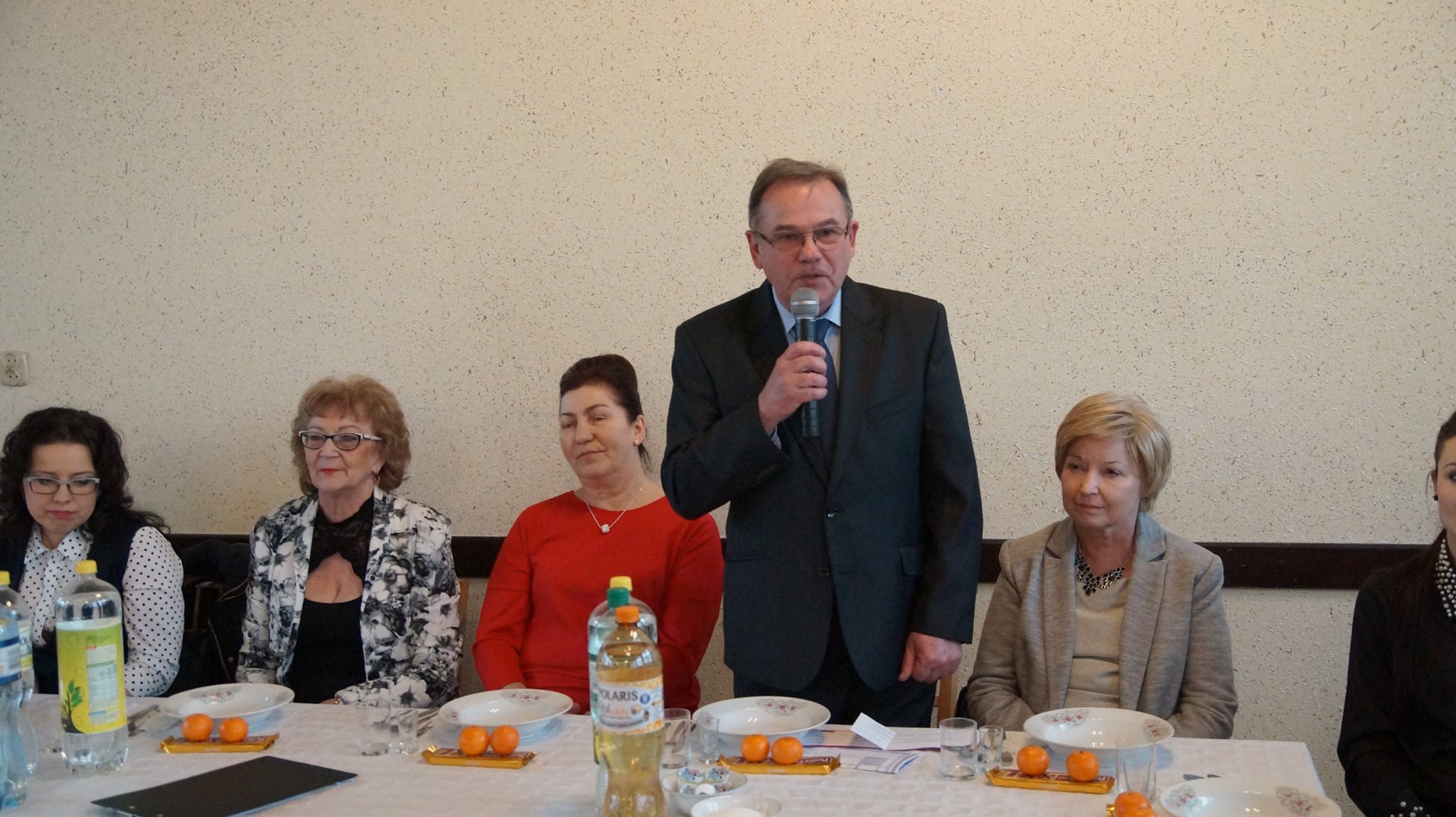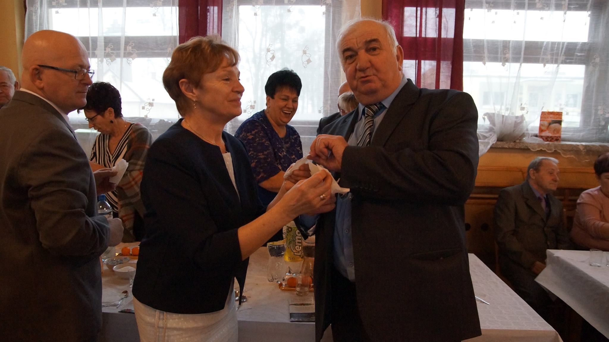 Na pierwszym tegorocznym spotkaniu nie zabrakło podziękowań za współpracę, życzeń i wspólnego kolędowania. Po części oficjalnej parkiet szybko wypełnił się parami chętnymi do tanecznej zabawy. Oprawę muzyczną zapewnił tradycyjnie Pan Piotr Herok.