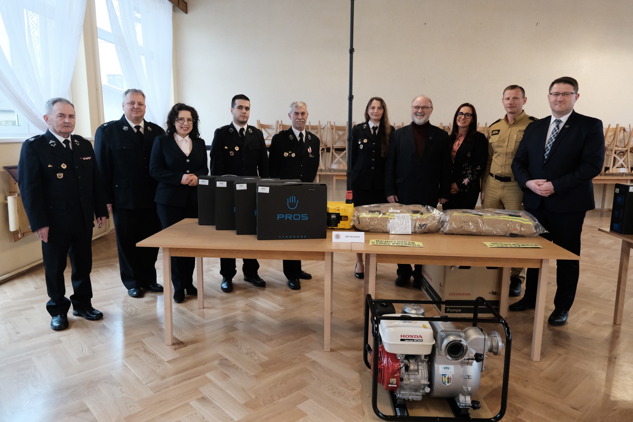 W sali OSP w Zbytkowie odbyło się oficjalne przekazanie sprzętu poszczególnym jednostkom. W wydarzeniu wzięli udział: Burmistrz Strumienia Anna Grygierek, Przewodniczący Rady Miejskiej Czesław Greń, Mateusz Pindel – Prezes WFOŚiGW w Katowicach, bryg. Michał Pokrzywa – Komendant Powiatowy PSP w Cieszynie, Zastępca Burmistrza Strumienia Magdalena Suchanek – Kowalska, Prezes Zarządu Oddziału Miejsko- Gminnego Związku OSP RP w Strumieniu Marek Omozik, Komendant Miejsko-Gminny Ireneusz Nowak oraz przedstawiciele wszystkich jednostek OSP z terenu gminy Strumień.