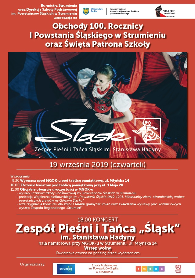 Obchody 100. Rocznicy I Powstania Śląskiego w Strumieniu oraz Święta Patrona Szkoły, które odbędą się 19 września (czwartek).
