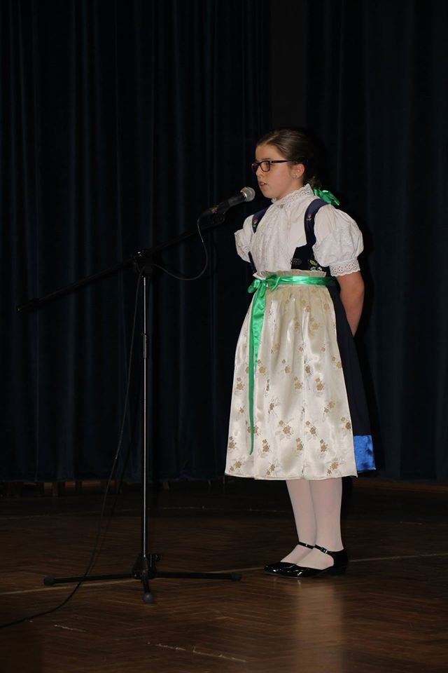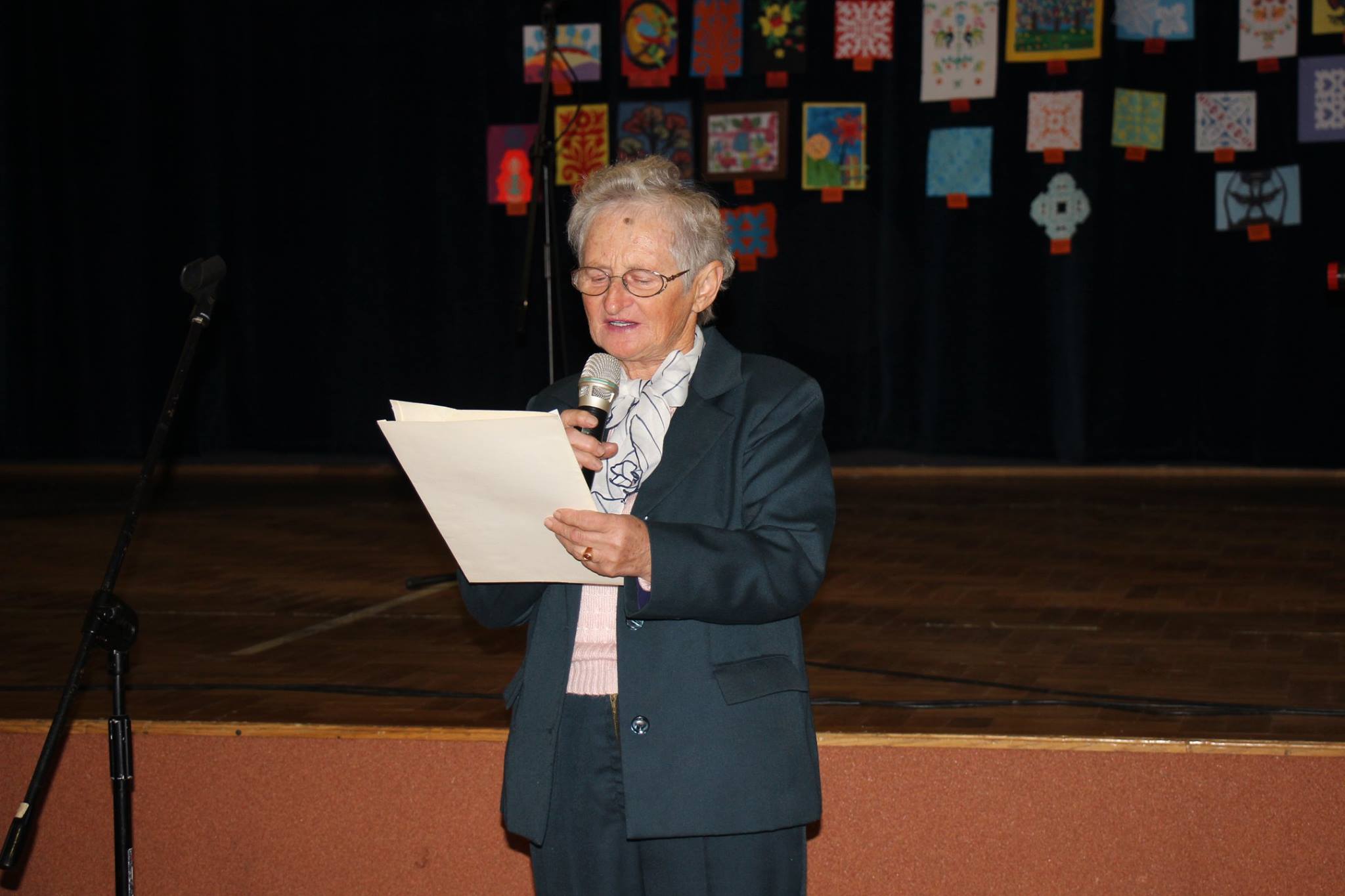 Mieszkańcy Pruchnej, wzorem Emilii Michalskiej starają się podtrzymywać lokalne tradycje i przekazywać je młodemu pokoleniu. Podczas sobotniego spotkania w Gminnym Centrum Integracji Wsi swoim dorobkiem mógł pochwalić się Zespół Szkół w Pruchnej, gdzie m.in. organizowany jest coroczny konkurs gwarowy „Rzóndzymy po naszymu”. Wszystkim zebranym zaprezentowali się laureaci tegorocznej edycji. Na scenie Pani Joanna Piechaczek i Pani Mariola Domagała na przykładzie uszytych własnoręcznie strojów omówiły z jakich elementów składa się damski i męski strój cieszyński. Poezję przedstawiły również Pani Anna Glac, Pani Teresa Grzybek i Pani Maria Madziar. Wspólnie odśpiewano pieśń do Św. Anny, a także hymn KGW autorstwa Emilii Michalskiej.