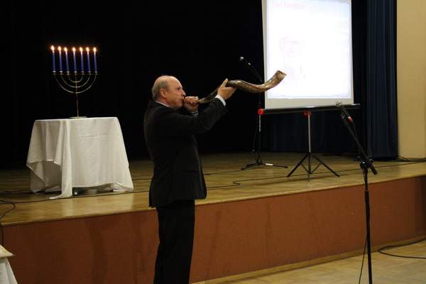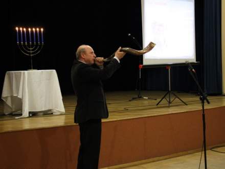 Na rozpoczęcie spotkania Pan Jan Cieślar zagrał na tradycyjnym żydowskim instrumencie wykonanym z baraniego rogu tzw. Szofarze i opowiedział o nim. Licznie zgromadzeni goście mogli dowiedzieć się wielu informacji o Józefie Kornblumie z prelekcji przygotowanej przez Panią Henrykę Brańczyk.