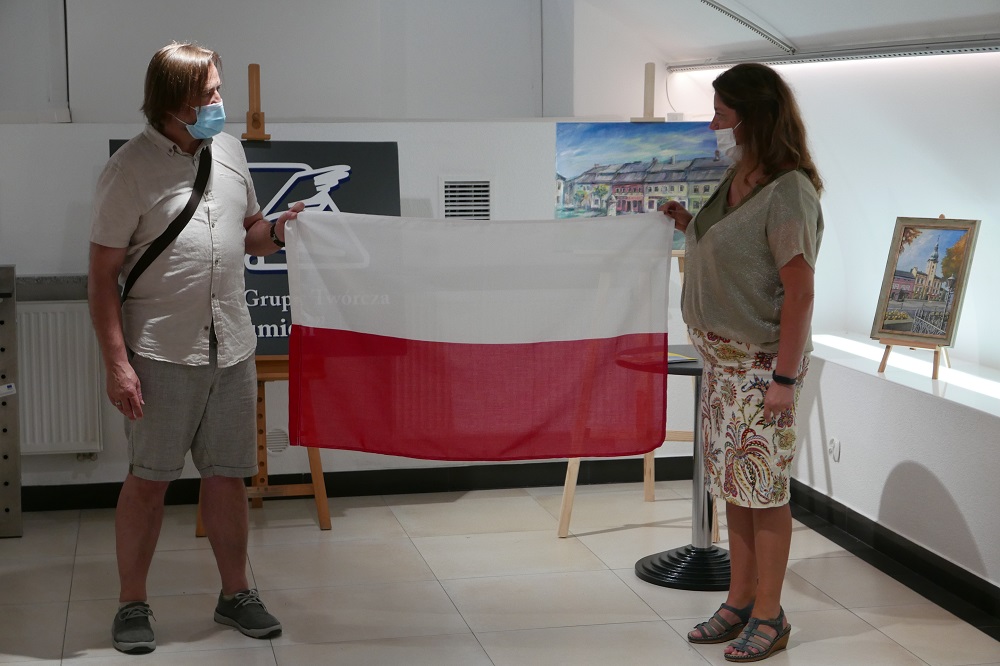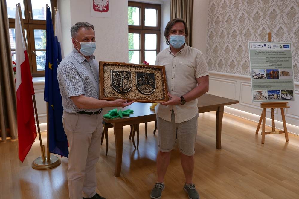 Gości przywitał w ratuszu Zastępca Burmistrza Strumienia Włodzimierz Cybulski i to na jego ręce Starosta Gminy Rabča Július Piták przekazał drewnianą płaskorzeźbę z herbami naszych gmin.   Później Słowacy mieli możliwość zwiedzenia Galerii Pod Ratuszem, gdzie aktualnie prezentowana jest najnowsza  wystawa Amatorskiej Grupy Twórczej Strumień „Tu serce moje”. To tutaj nastąpiło symboliczne wręczenie polskiej flagi Staroście Gminy Rabča.