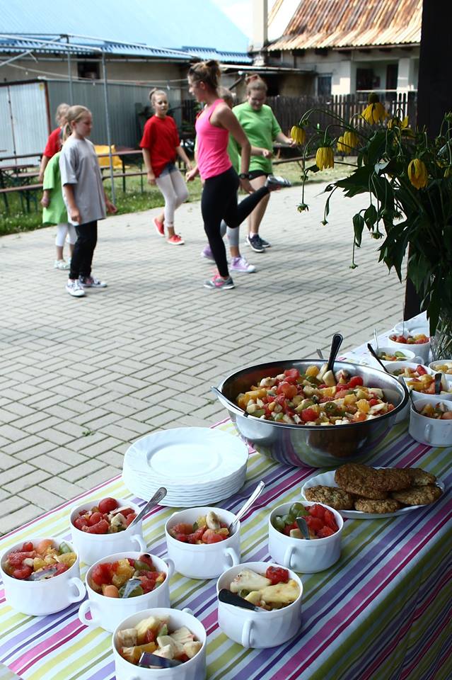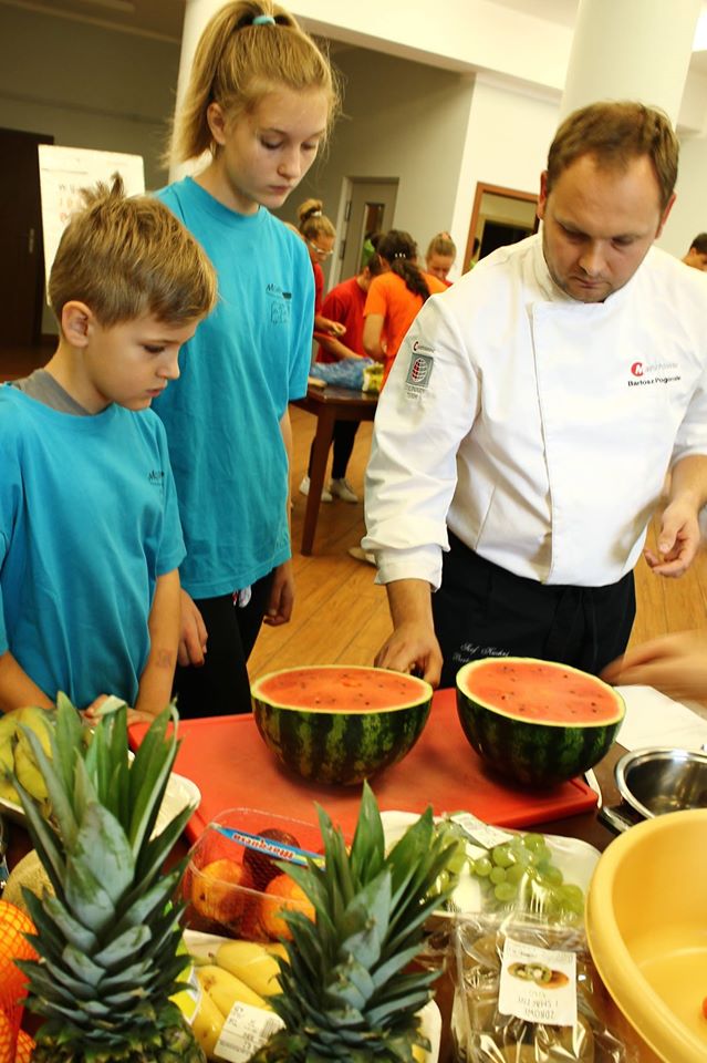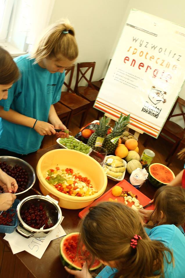 30 uczetsników warsztatów pod okiem prowadzącego Bartosza Pogorzałka upichciło najrozmaitsze smakołyki, m.in.: ciasto ucierane z owocami, panna cota, ciasto owsiane, warzywa w tempurze, szaszłyki serowe z mozarelli czy salsę pomidorowo-paprykową.