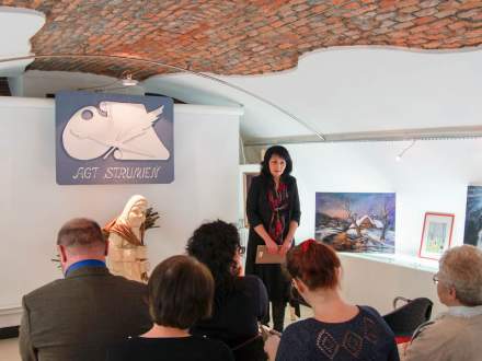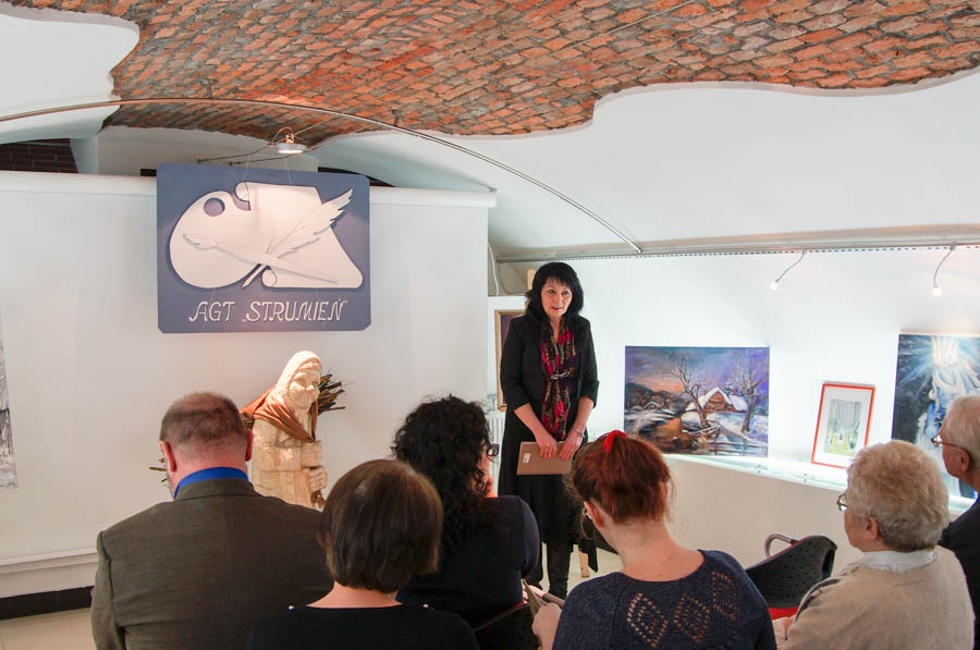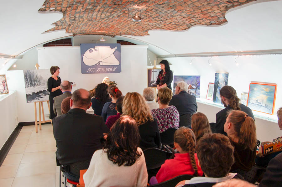 W miniony poniedziałek w Galerii pod Ratuszem w Strumieniu odbył się wernisaż wystawy autorstwa Amatorskiej Grupy Twórczej Strumień pt.: „W zimowej szacie”. Przewodnicząca AGT „Strumień” , pani Maria Michalczyk, przywitała licznie przybyłych gości i zaprosiła do prezentacji wszystkich autorów prac wystawy przedstawiających zimową aurę - pisanych, rzeźbionych i malowanych.