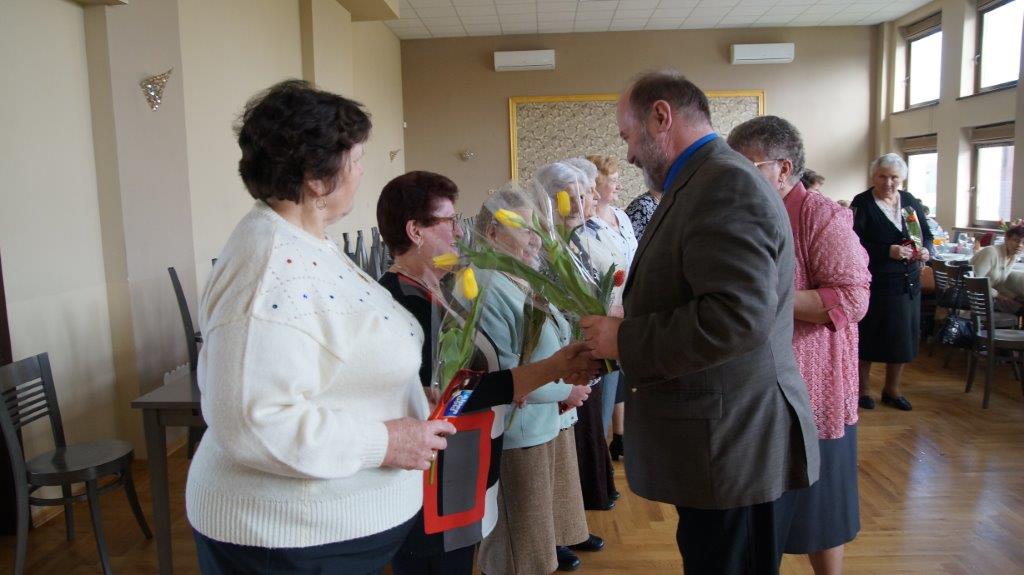 Kwiaty i słodkie upominki z rąk Przewodniczącego Rady Miejskiej i Przewodniczącej KGW otrzymały seniorki z Bąkowa: Wanda Szwarc, Irena Strządała, Hermina Szymiczek, Anna Smyczek, Elżbieta Penkala, Anna Czakon, Elżbieta Omozik, Marta Dałek, Aniela Stekla, Anna Frak, Halina Kobiela, Alojzja Nowak, Maria Żerdka oraz Irena Miłek.
