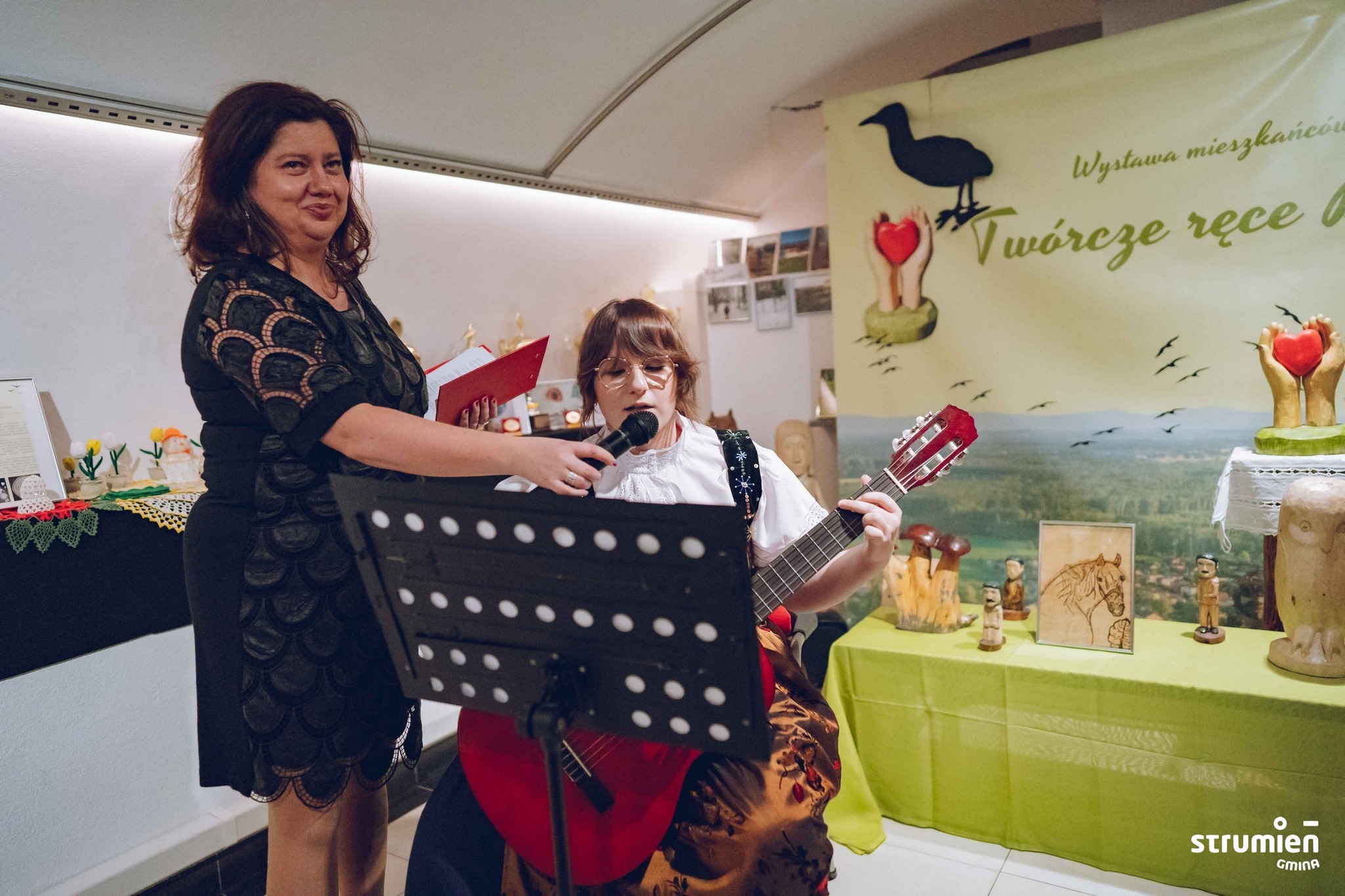 Na wernisażu nie zabrakło ich bliskich, sąsiadów oraz członków organizacji pozarządowych. O oprawę artystyczna wydarzenia zadbał Zespół Śpiewaczy „Echo Bąkowa”, a także uczniowie Zespołu Szkolno-Przedszkolnego w Bąkowie. Serdeczne gratulacje i słowa uznania dla artystów skierowali obecni goście, a wśród nich Burmistrz Strumienia, Anna Grygierek, oraz Przewodniczący Rady Miejskiej, Czesław Greń.