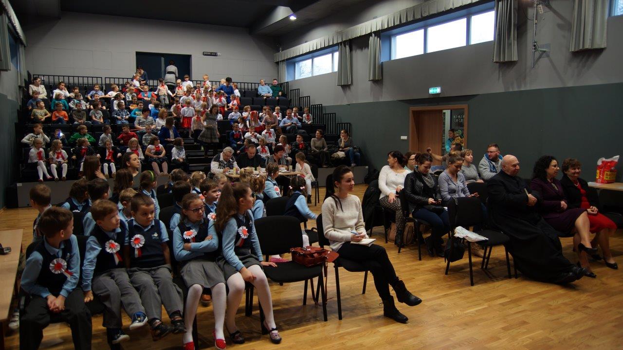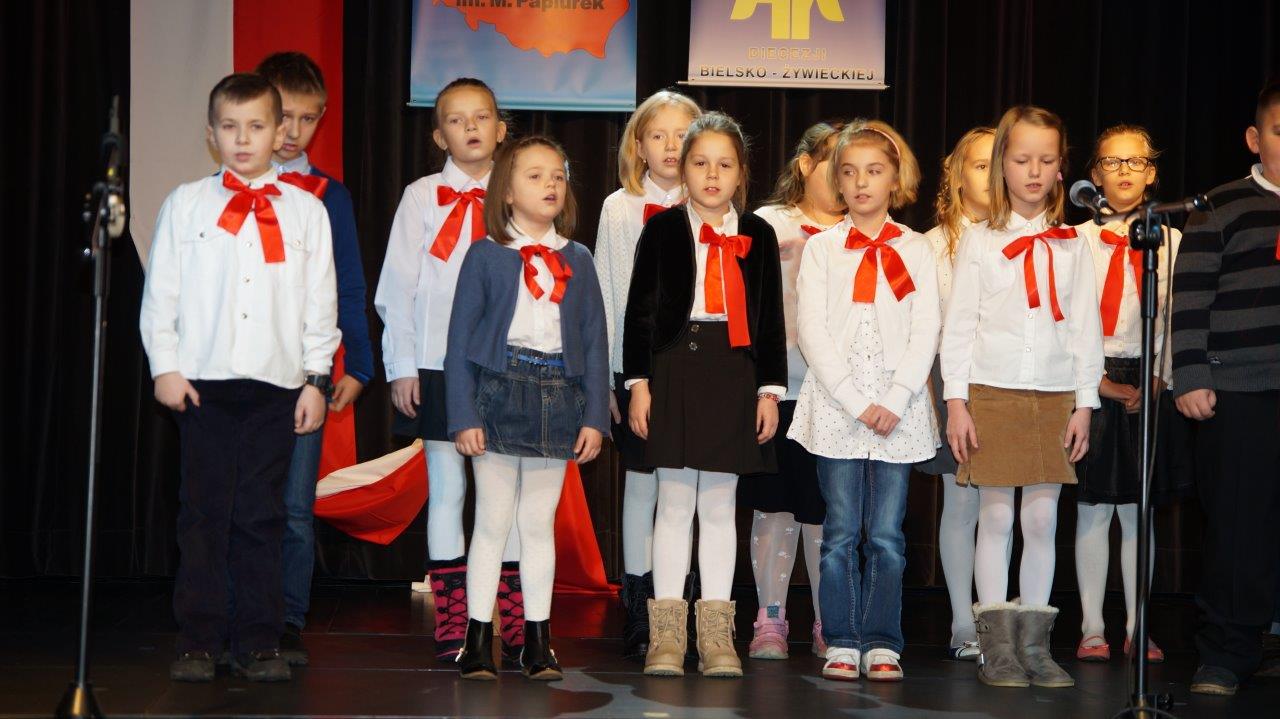 W grupie młodszej I miejsce zajął Zespół „Stokrotki” z Przedszkola w Strumieniu, który wykonał pieśni „Raduje się serce, raduje się dusza” i krakowiaka „Płynie Wisła, płynie”. Grupę przygotowała P. Joanna Worek. II miejsce zajął Zespół „Pszczółki” z Przedszkola w Strumieniu, który zaprezentował jedną z najbardziej popularnych piosenek z okresu I Wojny Światowej „Przybyli ułani pod okienko” oraz „Pałacyk Michla” . Grupę przygotowała P. Anna Zelin.