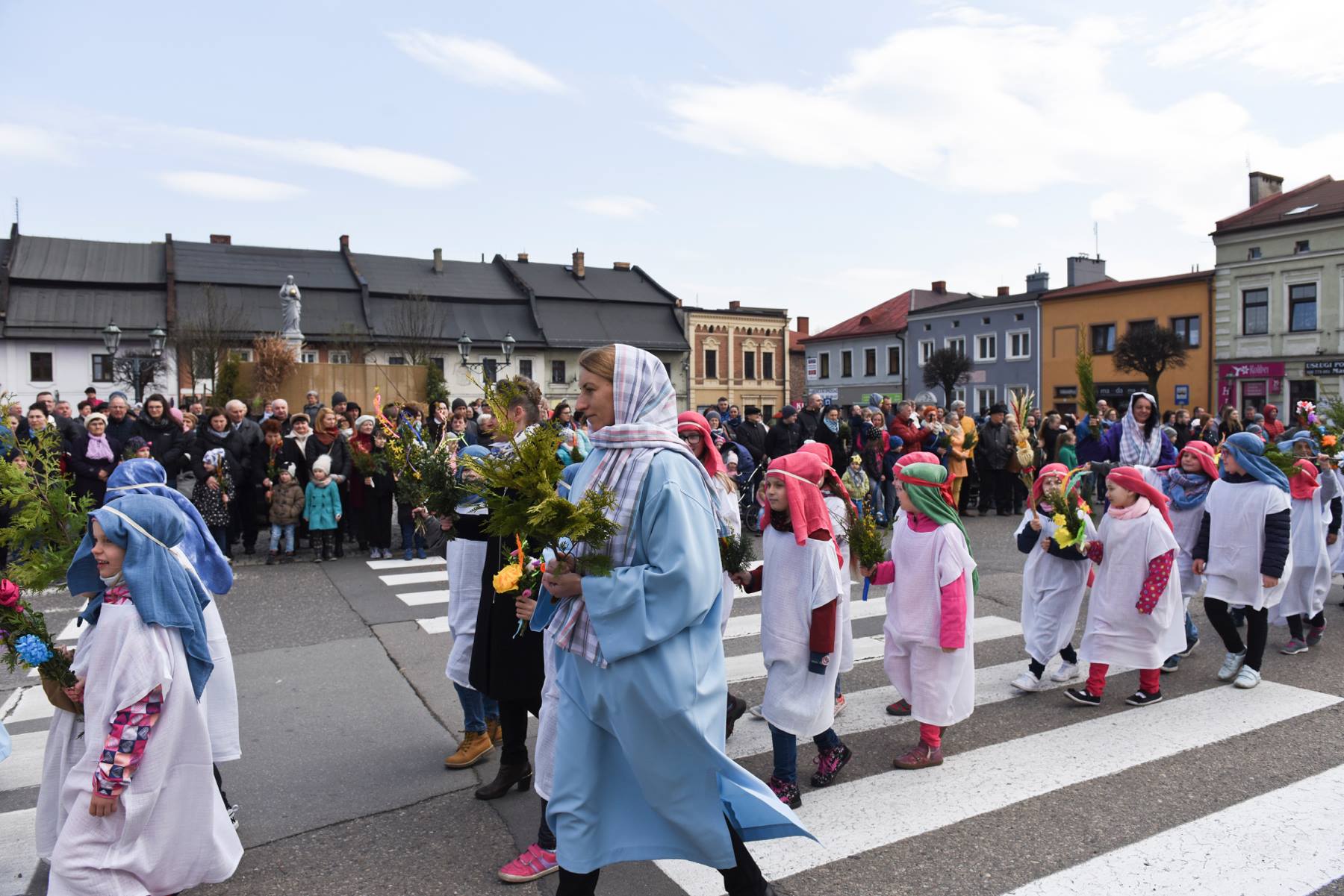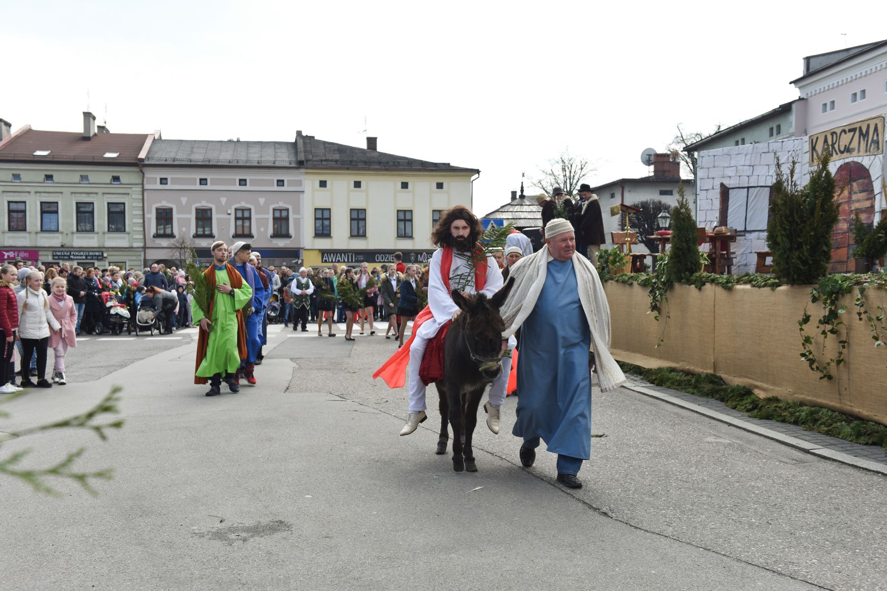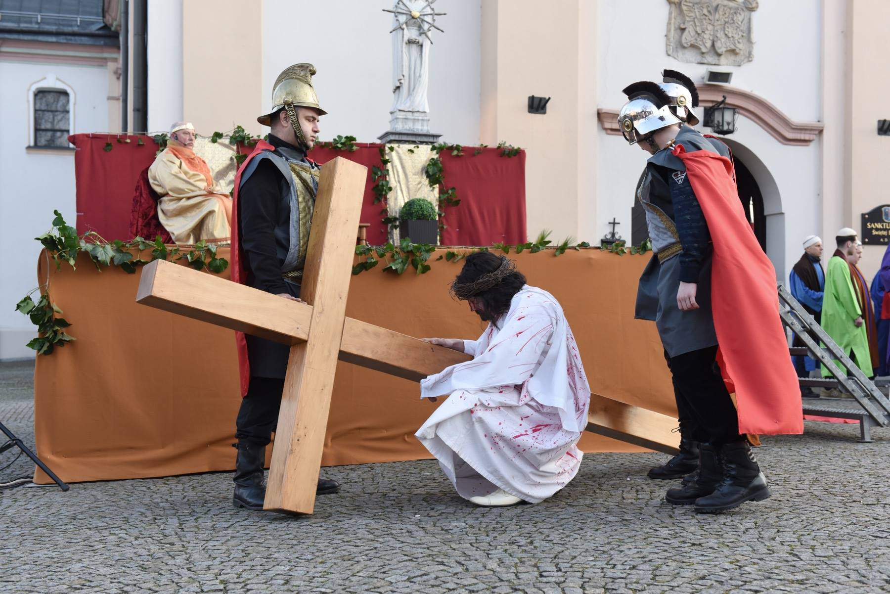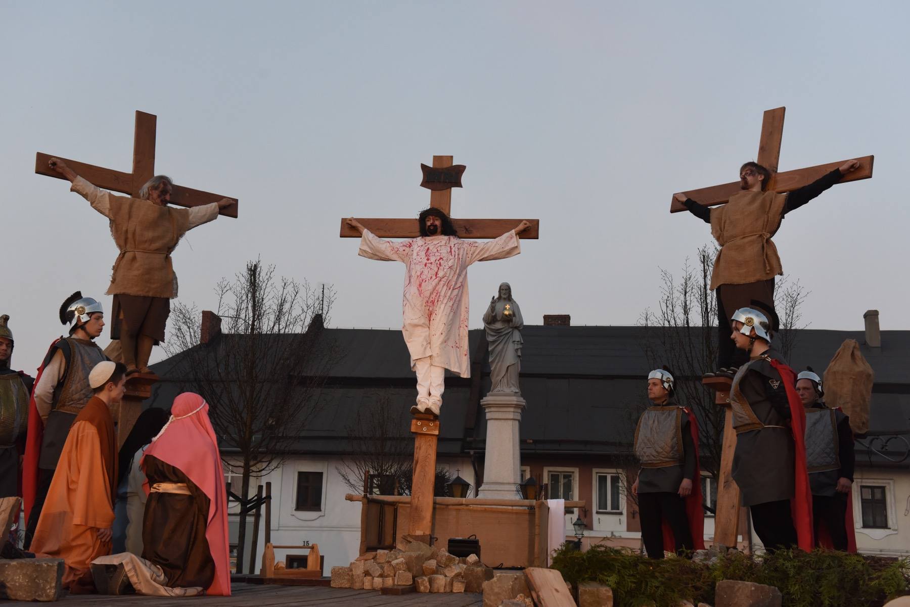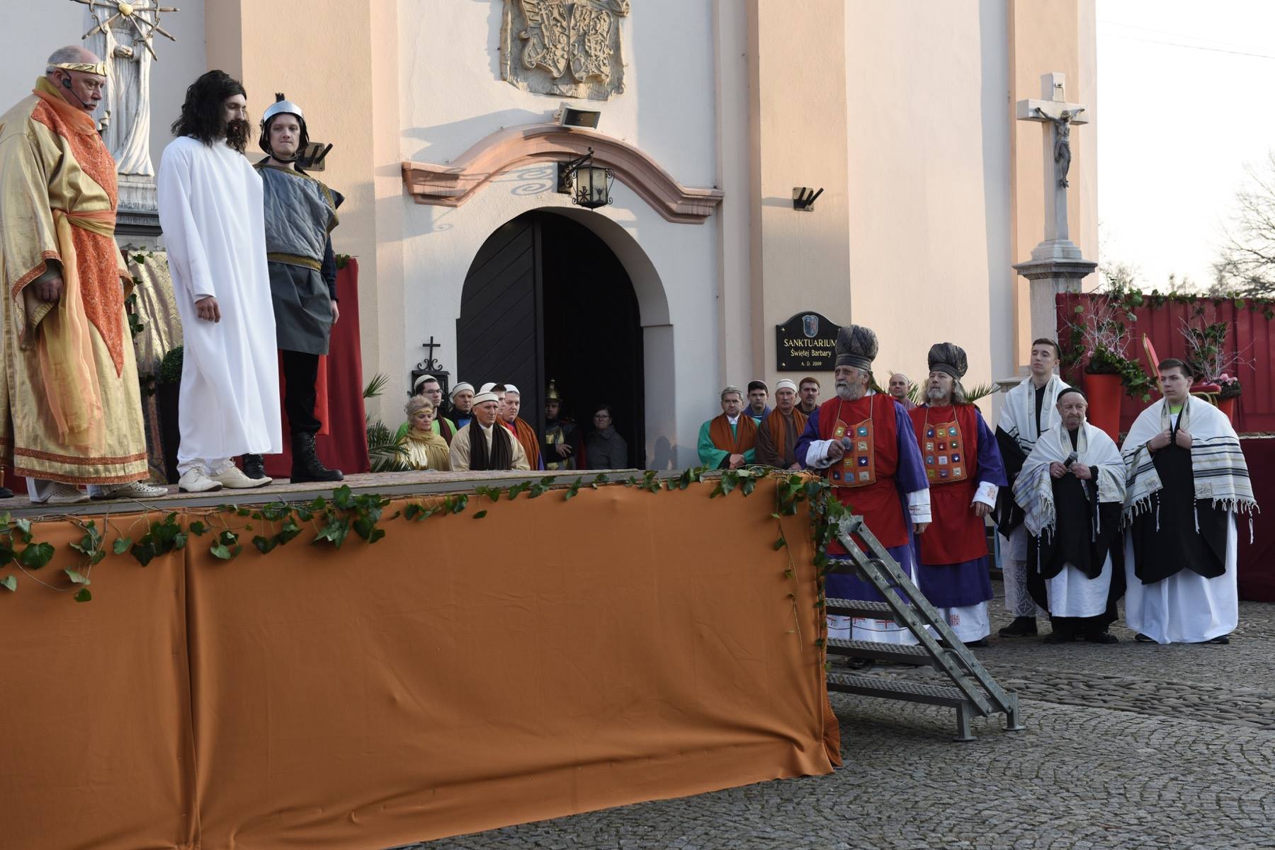 Tradycyjne plenerowe misteria rozpoczęło inscenizowane nabożeństwo Drogi Krzyżowej, ze sceną ukrzyżowania na strumieńskim rynku. Później poświęcenie palm w Niedzielę Palmową łączyło się z wielką procesją, w której do Sanktuarium św. Barbary wierni podążali za Panem Jezusem wiezionym na osiołku. Całość zamknęło misterium Zmartwychwstania prezentowane na kościelnym dziedzińcu tuż po rezurekcji.