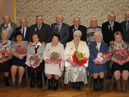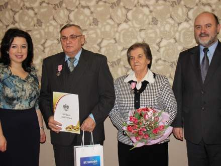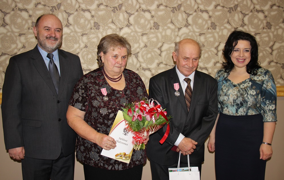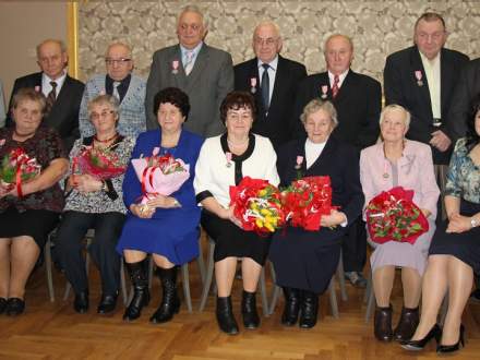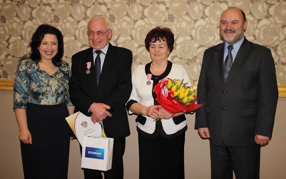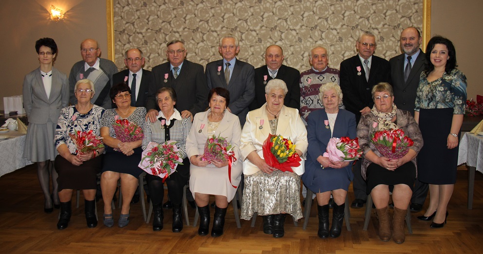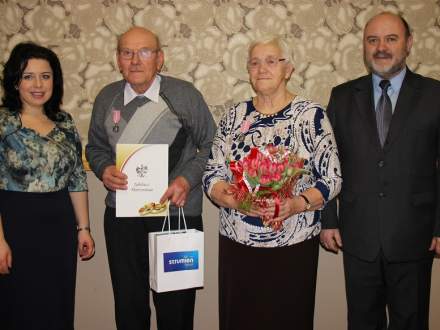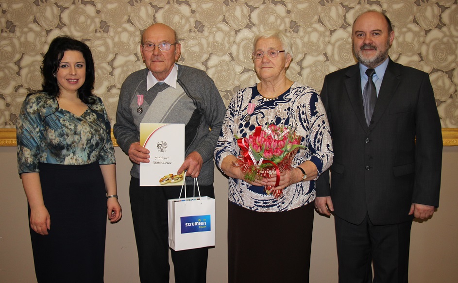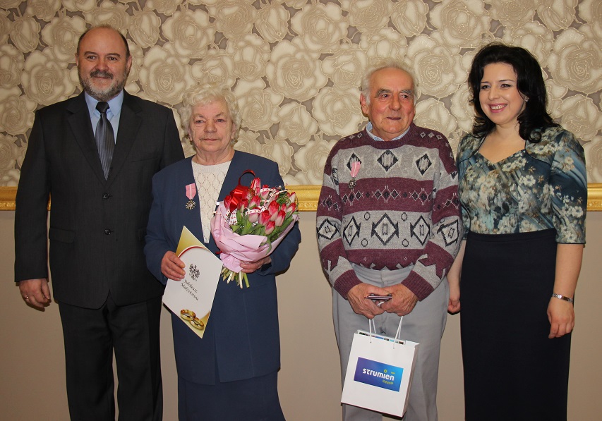 Zgromadzili prawdziwy skarbiec czynów wielkich i małych, uformowali swoje człowieczeństwo tak, aby mierzyło się z różnymi przeciwnościami losu. Codziennej trosce o dom i chleb, o dobre wychowanie i wykształcenie dzieci , o sprawiedliwość i uczciwość w życiu publicznym, oddali swoje najlepsze lata. Dziękując za wieloletnią wytrwałość w związku małżeńskim w stronę jubilatów obchodzących złote i diamentowe gody, popłynęły najlepsze życzenia i państwowe odznaczenia. – Burmistrz Strumienia w dowód społecznego uznania dla trwałości małżeństwa i rodziny wystąpił do Prezydenta Rzeczypospolitej Polskiej o wyróżnienie Państwa, poprzez odznaczenie medalami za długoletnie pożycie małżeńskie – powiedziała Urszula Strządała, kierownik Urzędu Stanu Cywilnego w Strumieniu. Medale prezydenckie, pary z 50-letnim stażem małżeńskim otrzymały z rąk Anny Grygierek, Burmistrz Strumienia i Czesława Grenia, Przewodniczącego Rady Miejskiej. Wyróżnione zostały również pary obchodzące 60. rocznicę ślubu. – Chcemy wspólnie z Panem Przewodniczącym Wam pogratulować, bardzo się cieszę że zechcieliście Państwo przyjąć medale i dziękuję że jesteście razem z nami. Serdecznie gratulujemy jubileuszu – mówiła Anna Grygierek, Burmistrz Strumienia, życząc jubilatom wszelkiej pomyślności oraz dalszych wspólnych lat w zdrowiu.