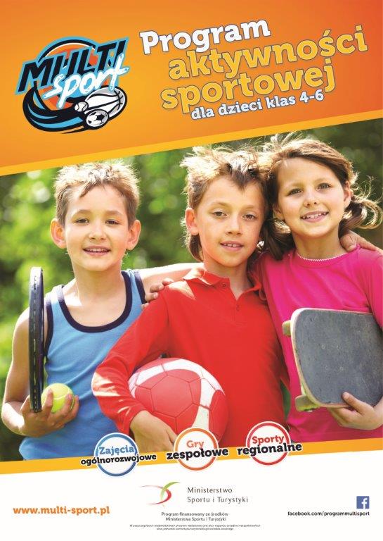 Program „MultiSport” powstał w trosce o poprawę zdolności motorycznych oraz podwyższenie poziomu sprawności fizycznej dzieci i młodzieży, a jego celem jest organizacja i prowadzenie systematycznych, bezpłatnych zajęć pozalekcyjnych i pozaszkolnych dla dzieci i młodzieży z klas 4 - 6 szkół podstawowych. Zajęcia będą prowadzone w różnorodnych, nowoczesnych i atrakcyjnych formach, stymulując aktywność fizyczną uczestników.