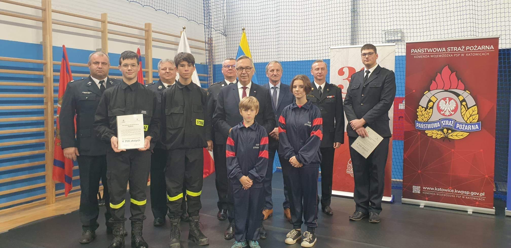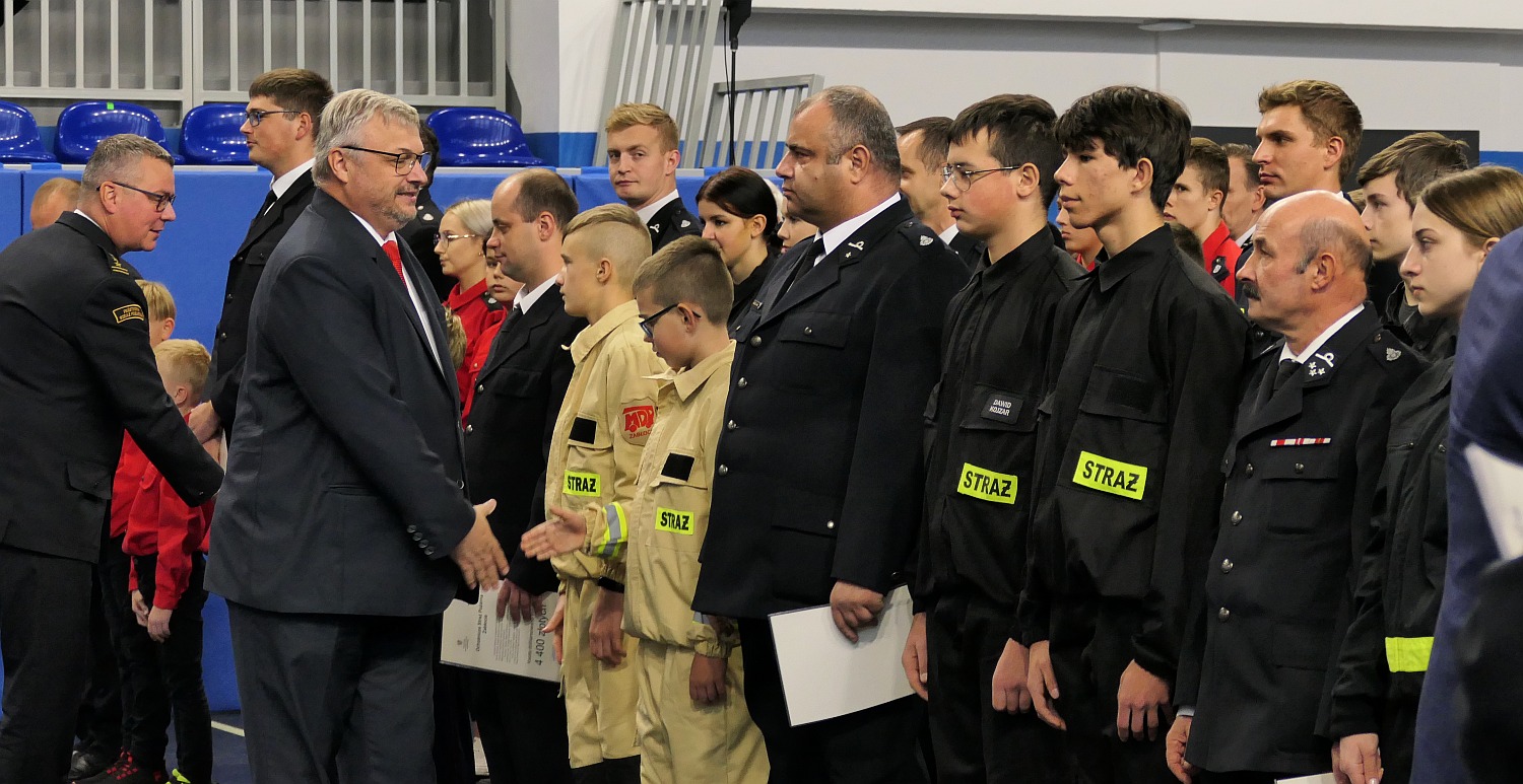 W tym tygodniu w Hali Widowiskowo-Sportowej w Skoczowie odbyła się uroczystość wręczenia promes dotacji celowej dla ochotniczych straży pożarnych na zakup sprzętu dla członków Młodzieżowych Drużyn Pożarniczych z terenu powiatu cieszyńskiego.