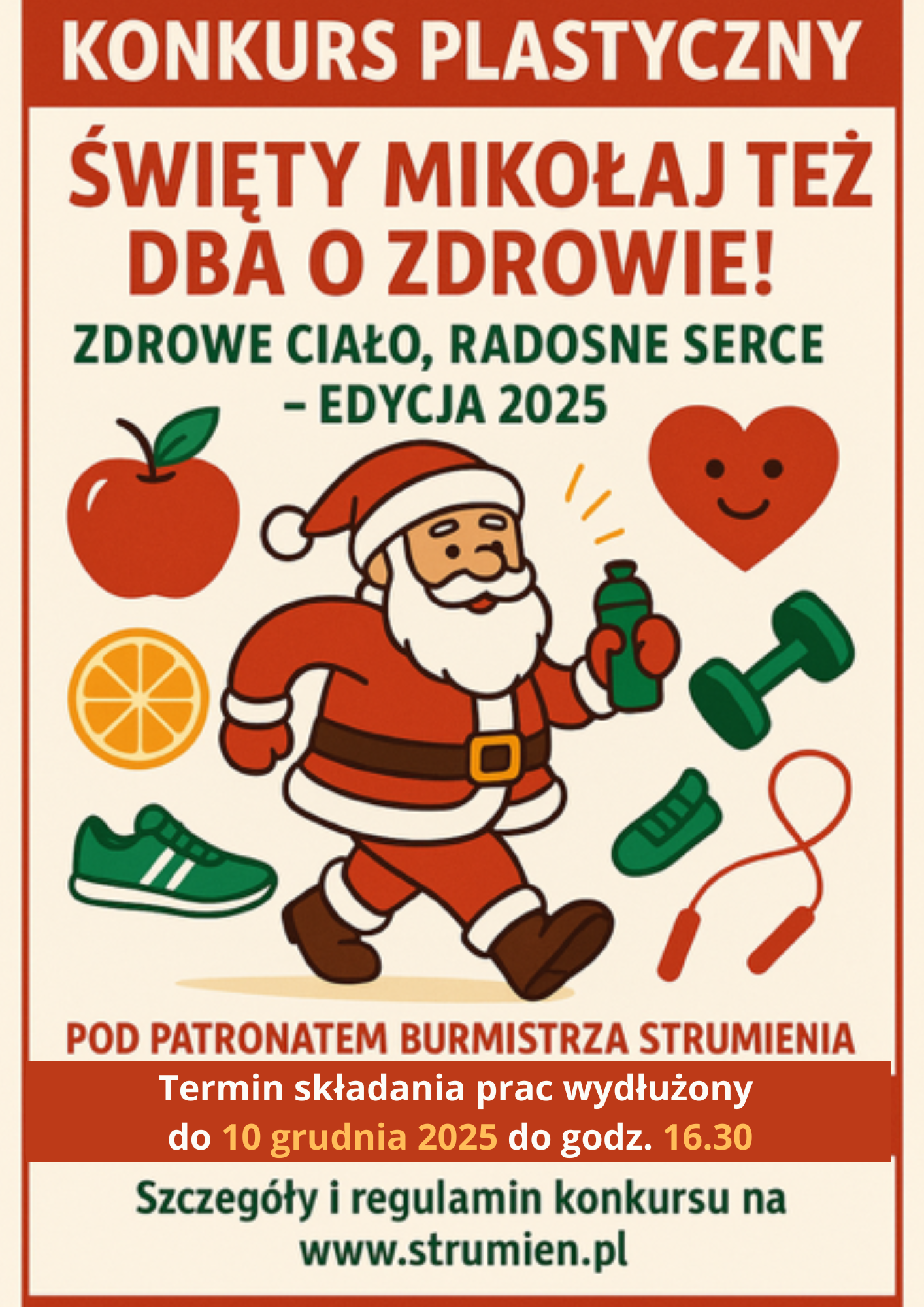 Konkurs organizowany jest pod patronatem Burmistrza Strumienia i ma na celu promowanie zdrowego stylu życia wśród mieszkańców naszej gminy. Uczestnicy mogą w artystyczny sposób pokazać, jak w okresie świątecznym dbać o zdrowie – poprzez ruch, dobre nawyki żywieniowe, radość i uśmiech.
