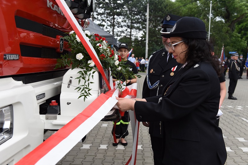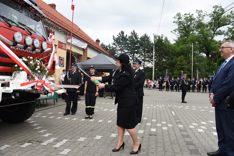Po czym Wiceminister Rodziny, Pracy i Polityki Społecznej Stanisław Szwed, Brygadier Olgierd Koźminski z Komendy Wojewódzkiej Państwowej Straży Pożarnej w Katowicach oraz Brygadier Damian Legierski – Komendant Powiatowy Państwowej Straży Pożarnej w Cieszynie przekazali kluczyki naczelnikowi OSP Sławomirowi Milacie oraz kierowcy Henrykowi Siekierce.