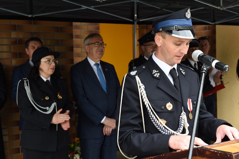 Dowódcą sobotniej uroczystości był Komendant Miejsko-Gminny dh Ireneusz Nowak, który przeprowadził przegląd pododdziałów i przekazał raport o gotowości do rozpoczęcia uroczystości dh Markowi Omozikowi Członkowi Zarządu Oddziału Wojewódzkiego ZOSP RP. Następnie poczet flagowy zawiesił flagę państwową na maszt.