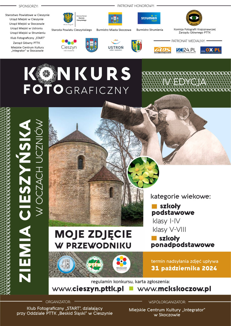 Czas na zgłoszenie prac do IV edycji Konkursu Fotograficznego „Ziemia Cieszyńska w Oczach Uczniów” dobiega końca! Tematem tegorocznej edycji jest „Moje zdjęcie w przewodniku”. Uczniowie szkół podstawowych (klasy I-IV oraz V-VIII) oraz szkół ponadpodstawowych mają szansę zaprezentować swoje zdjęcia i wziąć udział w konkursie.