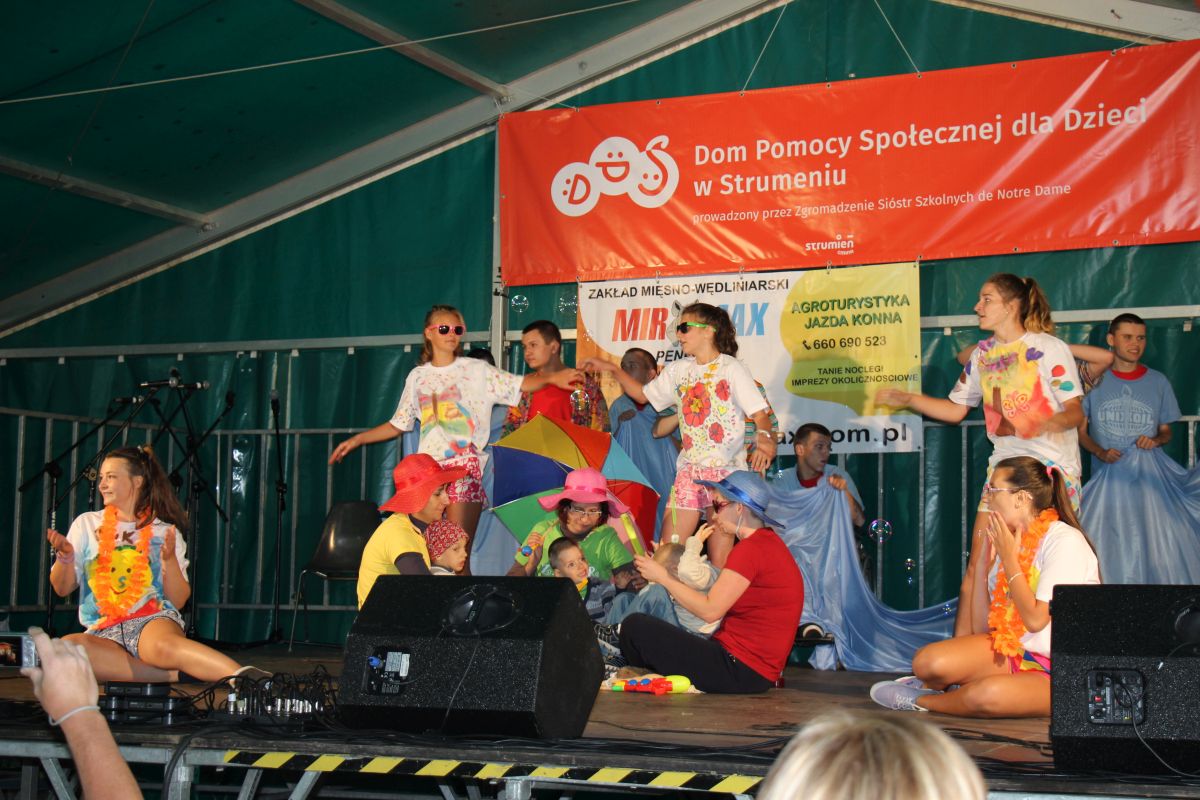 Wszyscy wspólnie dziękowali za 60 lat działalności domu podczas mszy świętej. W kościele dzieci zaprezentowały również etiudę teatralną pokazując jak wygląda codzienność domu i jego historia. Następnie w parku odbył się piknik, gdzie pod hasłem „Razem mnożymy radość” wspólnie bawili się wszyscy do późnego wieczora. Można było wziąć udział w konkursach, zabawach, czy podziwiać atrakcje na scenie. Zaprezentowały się dzieci z przedszkola, uczniowie ze Szkoły Podstawowej w Strumieniu czy młodzież z zaprzyjaźnionych gimnazjów i szkół. Swoje talenty pokazali też chłopcy, którzy na co dzień mieszkają w Domu Pomocy Społecznej w Strumieniu, którzy uczą się również w strumieńskich placówkach oświatowych.