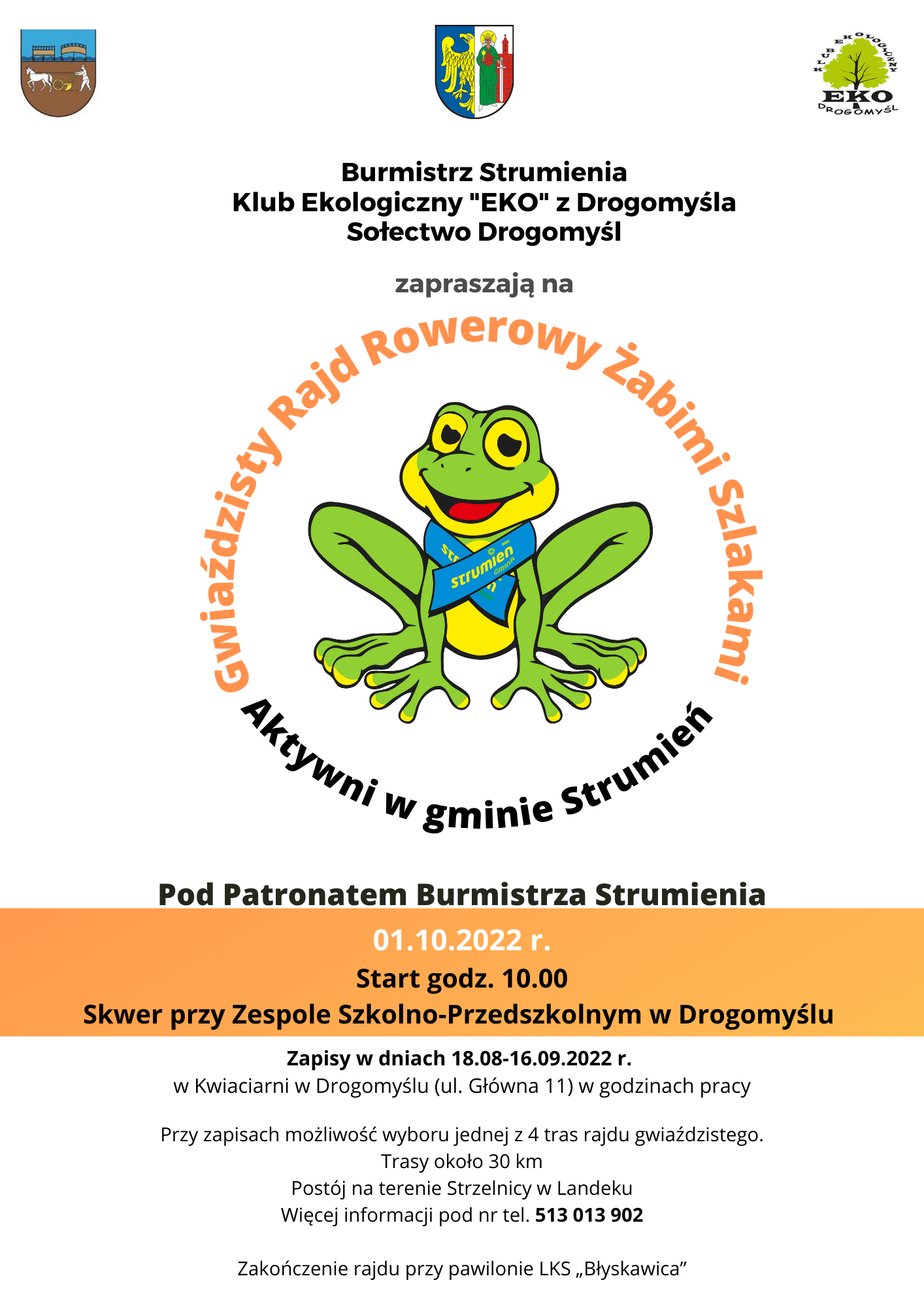 Burmistrz Strumienia, Klub Ekologiczny „EKO” z Drogomyśla oraz Sołectwo Drogomyśl zapraszają na Gwiaździsty Rajd Rowerowy Żabimi Szlakami.