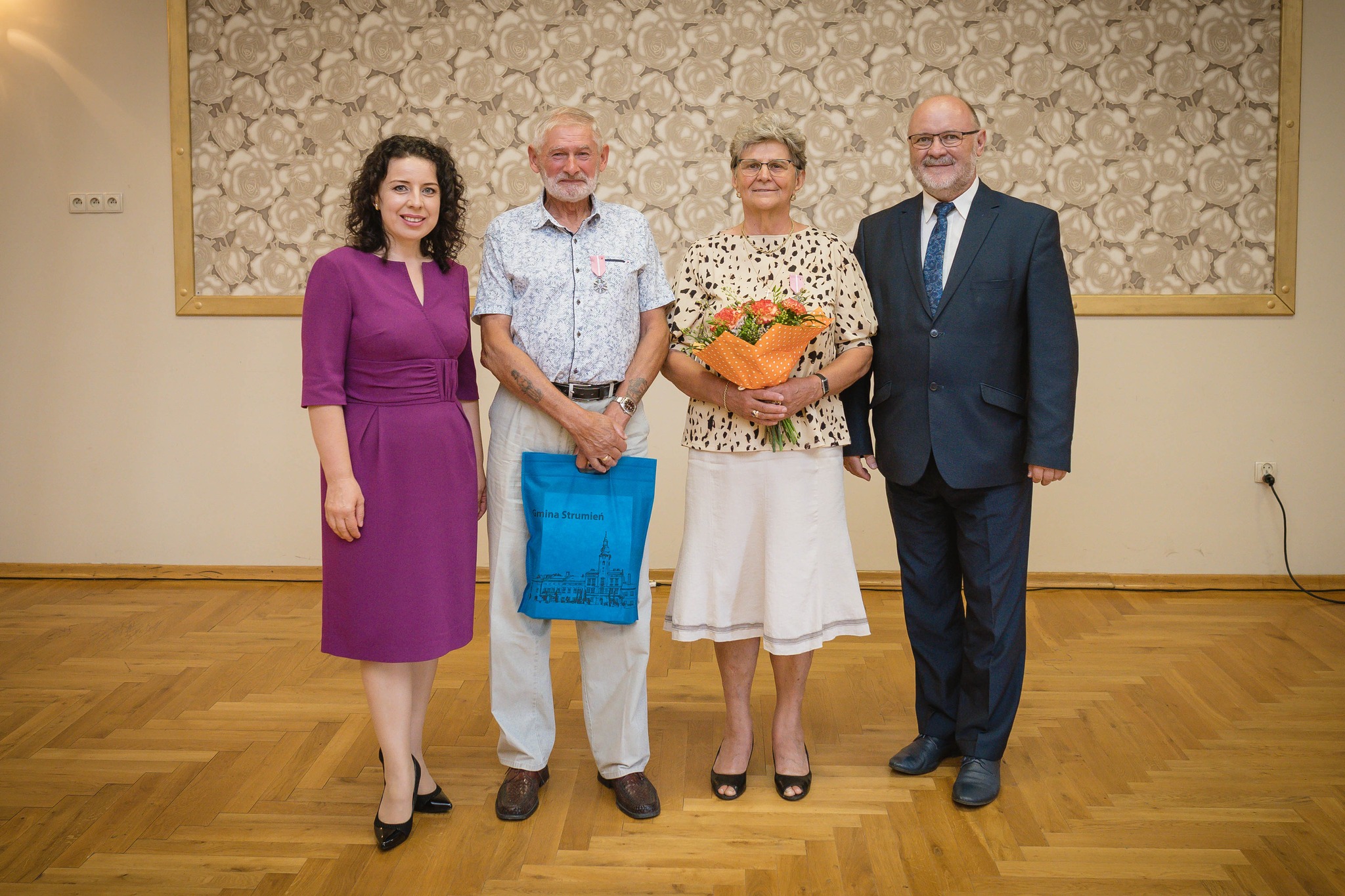 Podczas uroczystego spotkania Małżonkowie zostali odznaczeni medalami za długoletnie pożycie małżeńskie nadanymi przez Prezydenta Rzeczpospolitej Polskiej. Aktu dekoracji dokonała Burmistrz Strumienia Anna Grygierek w towarzystwie Kierownika Urzędu Stanu Cywilnego Urszuli Strządały i Przewodniczącego Rady Miejskiej Czesława Grenia.