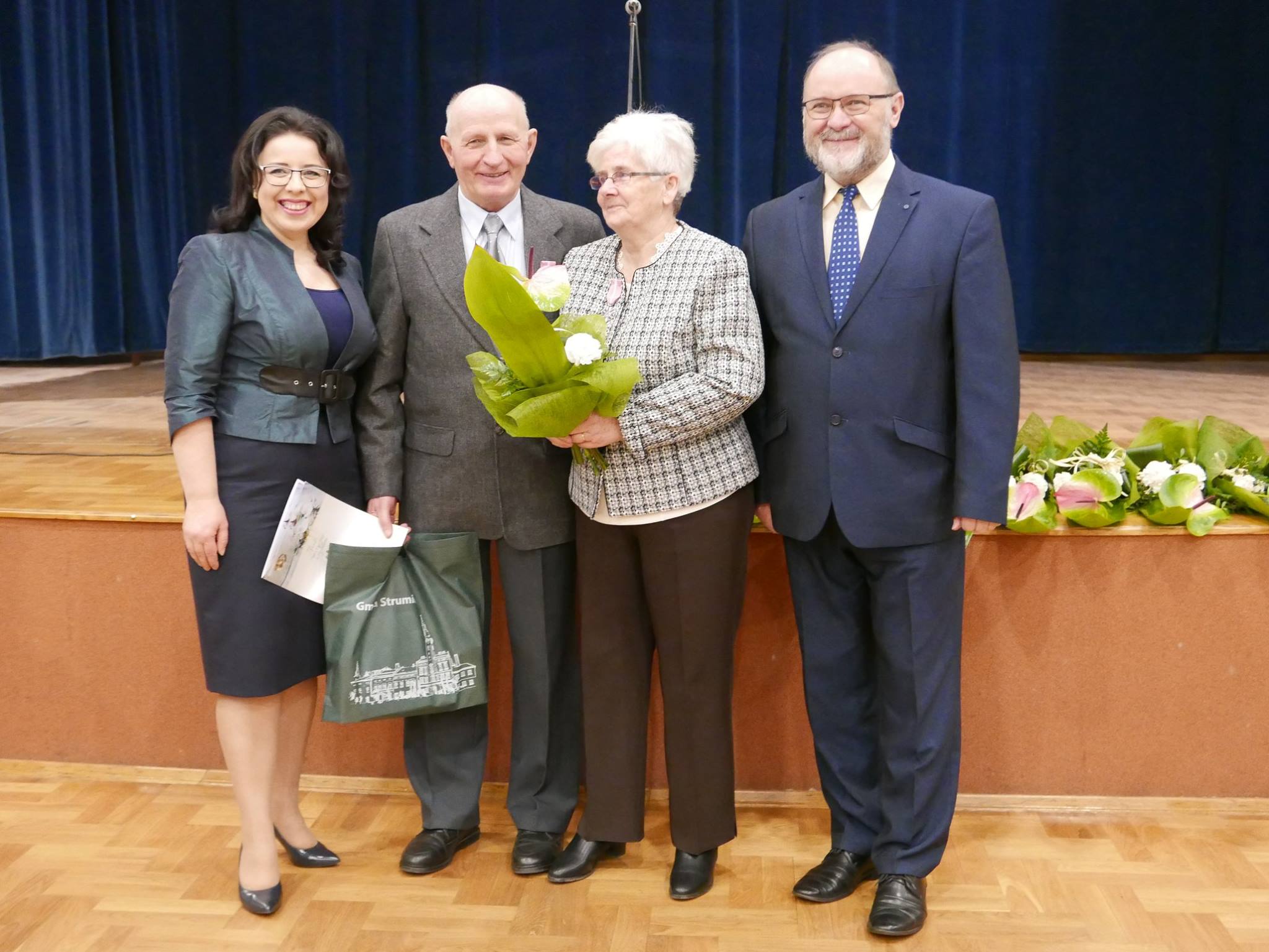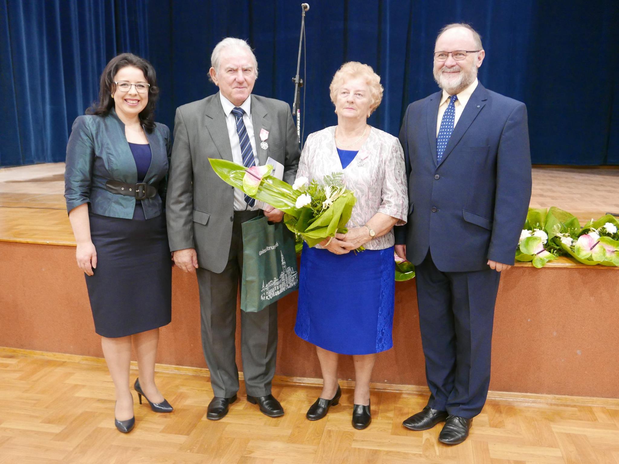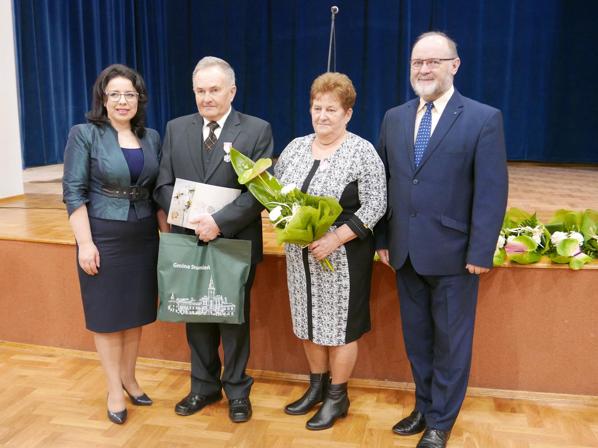 Jubilaci zostali odznaczeni medalami za długoletnie pożycie małżeńskie nadanymi przez Prezydenta Rzeczpospolitej Polskiej. Aktu dekoracji dokonała Burmistrz Strumienia Anna Grygierek w towarzystwie Kierownika Urzędu Stanu Cywilnego Pani Urszuli Strządały i Przewodniczącego Rady Miejskiej Czesława Grenia. Nie zabrakło również pamiątkowych dyplomów, kwiatów oraz zdjęć