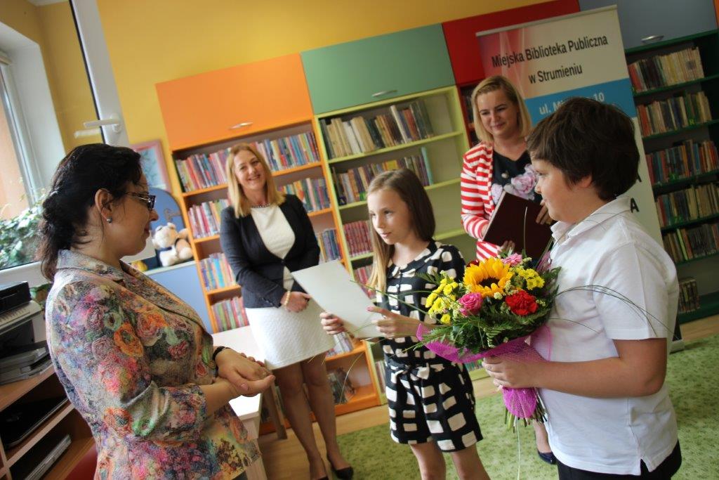 Dzieci uczęszczające na zajęcia odebrały dyplomy z rąk Burmistrza Strumienia, Anny Grygierek. Nagrody za wzorową frekwencję przekazała równiez dyrektor Miejskiej Biblioteki Publicznej Danuta Jabłońska.