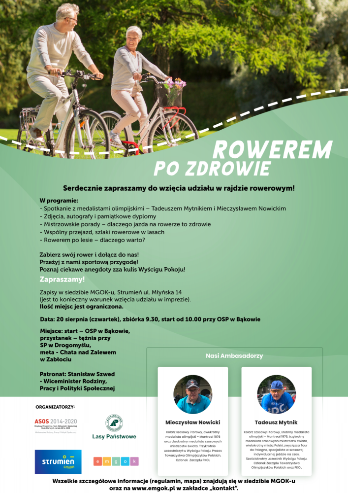 Burmistrz Strumienia oraz Miejsko-Gminny Ośrodek Kultury w Strumieniu serdecznie zapraszają do wzięcia udziału w Rajdzie Rowerowym "Rowerem po zdrowie".