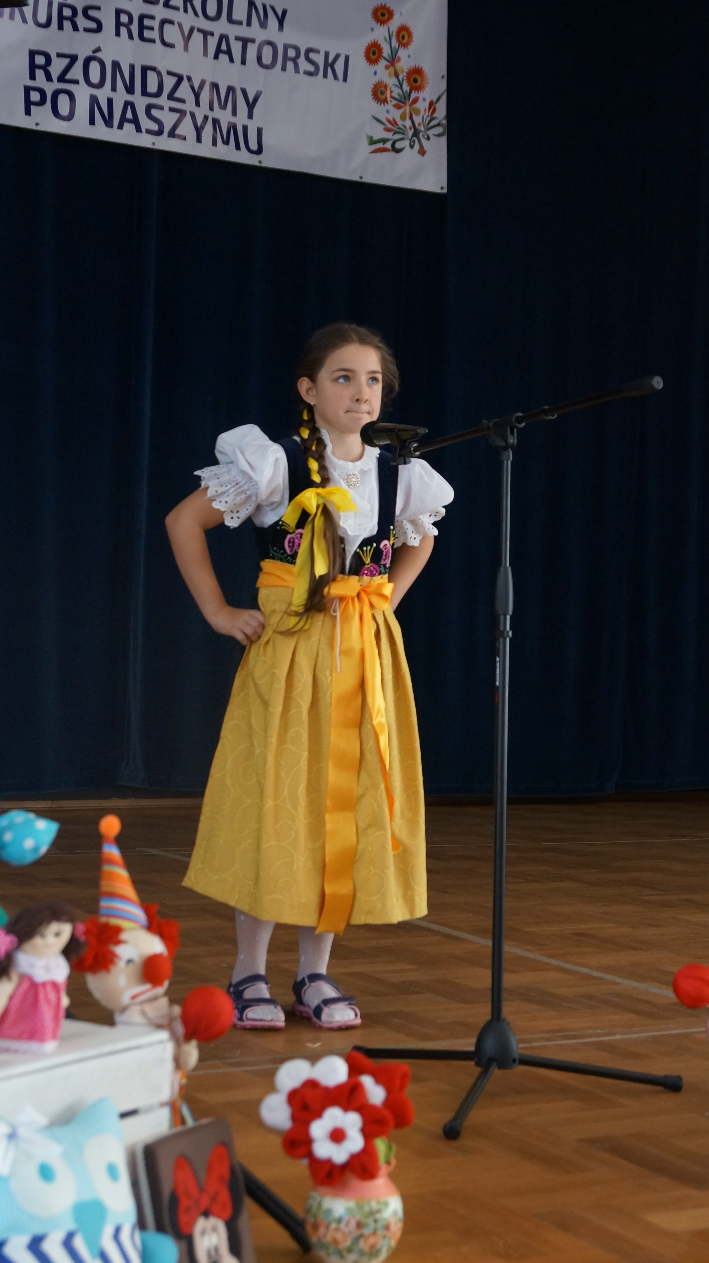 Kolejna – już dziewiąta – edycja Międzyszkolnego Konkursu Recytatorskiego Rzóndzymy po naszymu zakończona. 31 maja w Centrum Integracji Wsi w Pruchnej zebrało się ponad czterdziestu uczniów i przedszkolaków, którzy zaprezentowali gwarą Śląska Cieszyńskiego interpretacje wierszy i prozy z motywem dziecka. Konkurs honorowym patronatem objęła Burmistrz Strumienia Pani Anna Grygierek. Gości przywitał dyrektor Mariusz Mendrok oraz zastępca Burmistrza Strumienia Włodzimierz Cybulski. Towarzyszyła im mała Julia Raszka ubrana w strój ludowy. W czasie obrad komisji konkursowej w składzie: Anna Mazur, Ewelina Szuścik i Urszula Stefania Korzonek, można było wziąć udział w warsztatach muzycznych – śpiewano piosenkę o babuciu oraz projektowano strój ludowy. Goście i uczestnicy częstowali się ciastami upieczonymi przez nauczycieli i rodziców. Podziwiano też scenę udekorowaną zabawkami wykonanymi przez mieszkankę Pruchnej – panią Annę Czendlik.