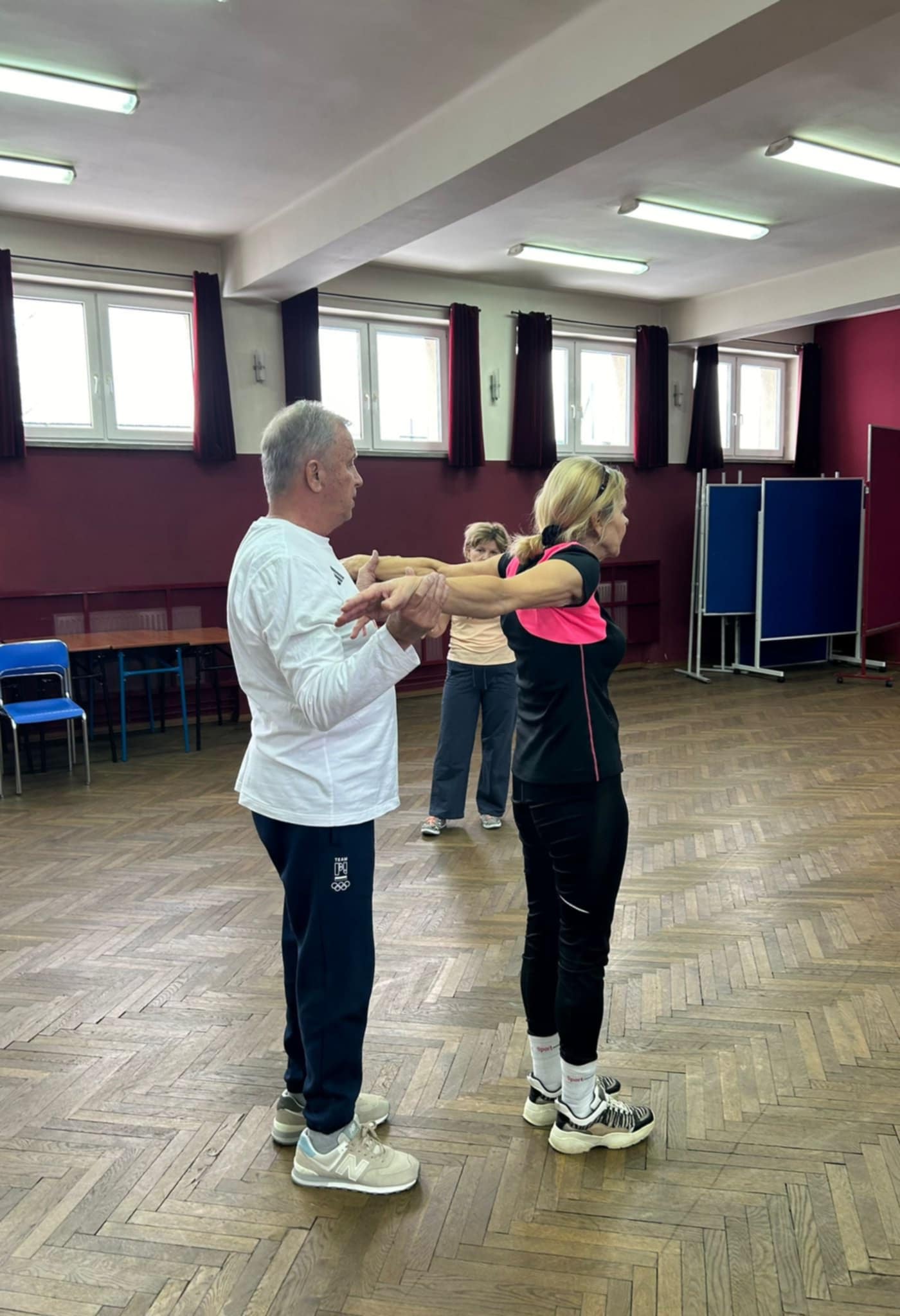 W programie spotkania „I Ty bądź w Olimpijskiej formie” był trening z Mistrzem i porady jak utrzymać dobrą kondycję, strzelanie z pistoletu laserowego, rozmowa o sportowym życiu mistrza olimpijskiego. Gość widząc zaangażowanie seniorów i ich umiejętności sportowe, nie krył podziwu i nie szczędził pochwał. Podkreślał znaczenie regularnej aktywności fizycznej przez osoby starsze, która pozwala na podtrzymywanie zdrowia i sprawności w życiu codziennym, samodzielnym wykonywaniu czynności domowych czy swobodnym przemieszczaniu się.