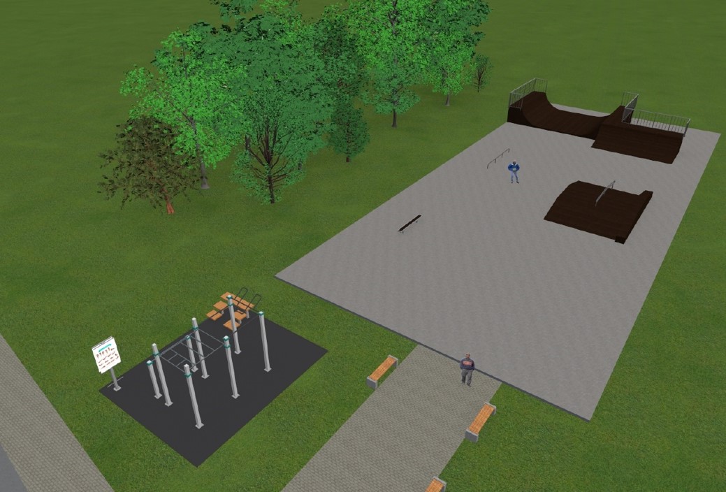 Skatepark to nie wszystko.  Chodzi o kompleksowe zagospodarowanie działki. Docelowo rozważane jest stworzenie tu placu zabaw, boiska do siatkówki plażowej, kilku miejsc postojowych.