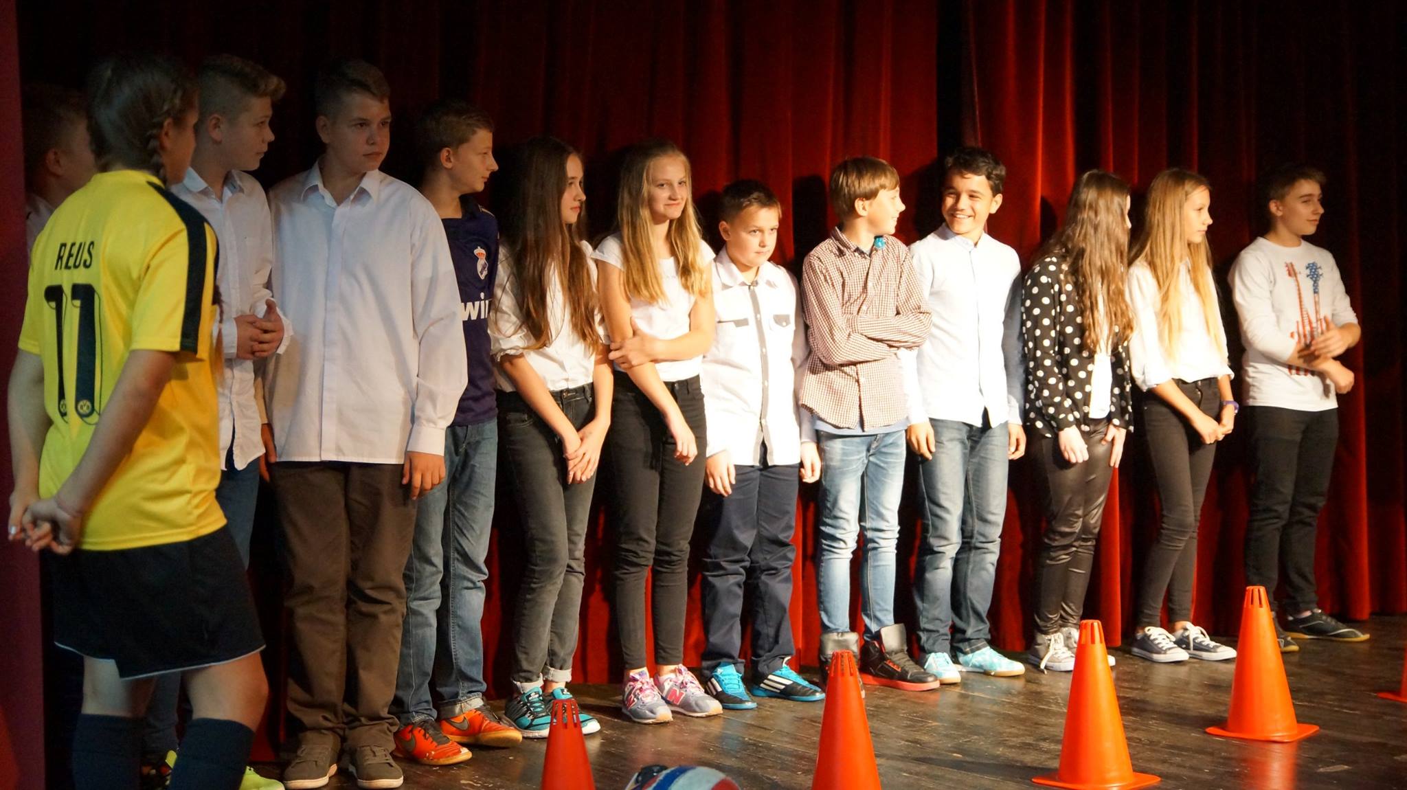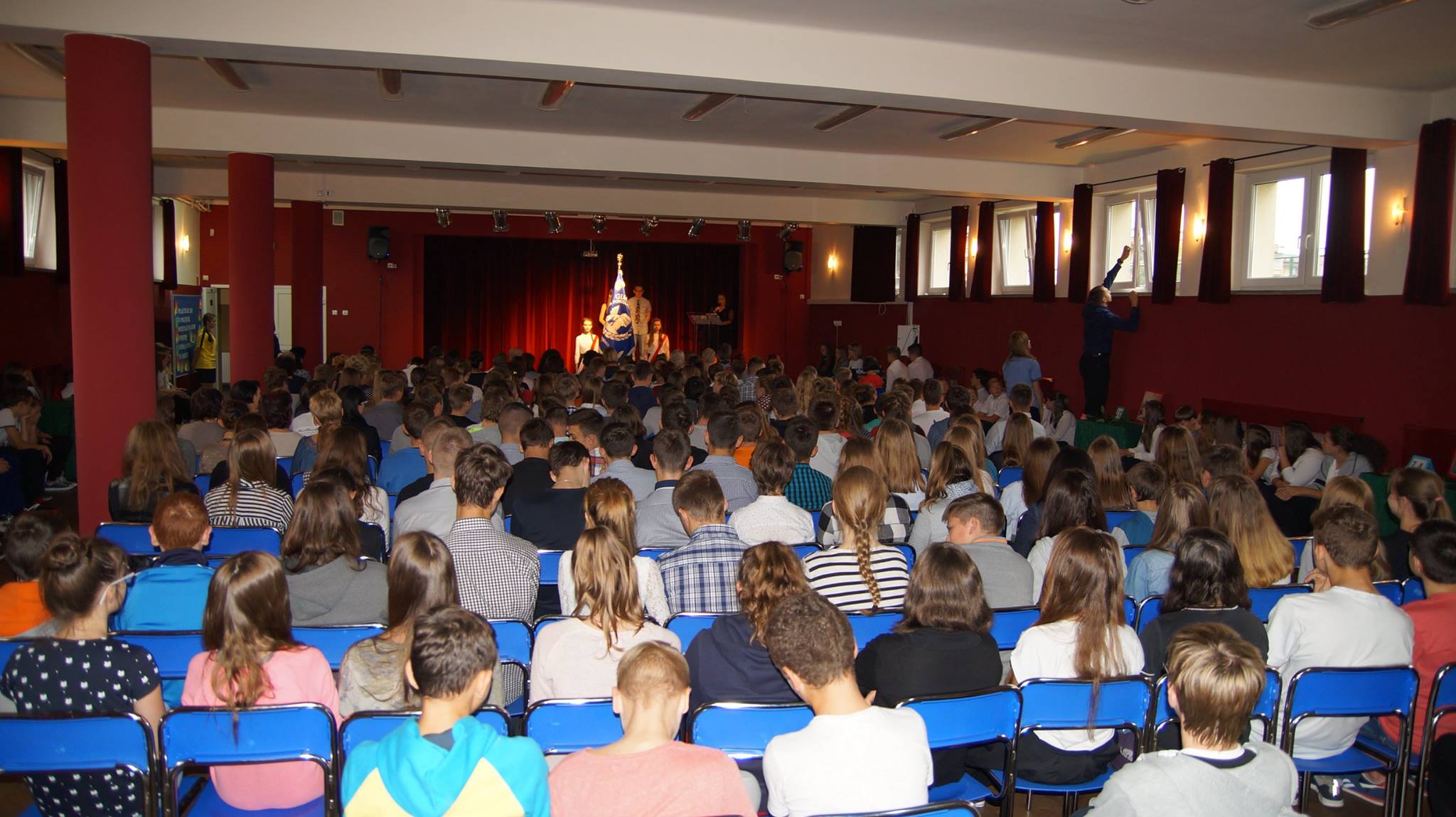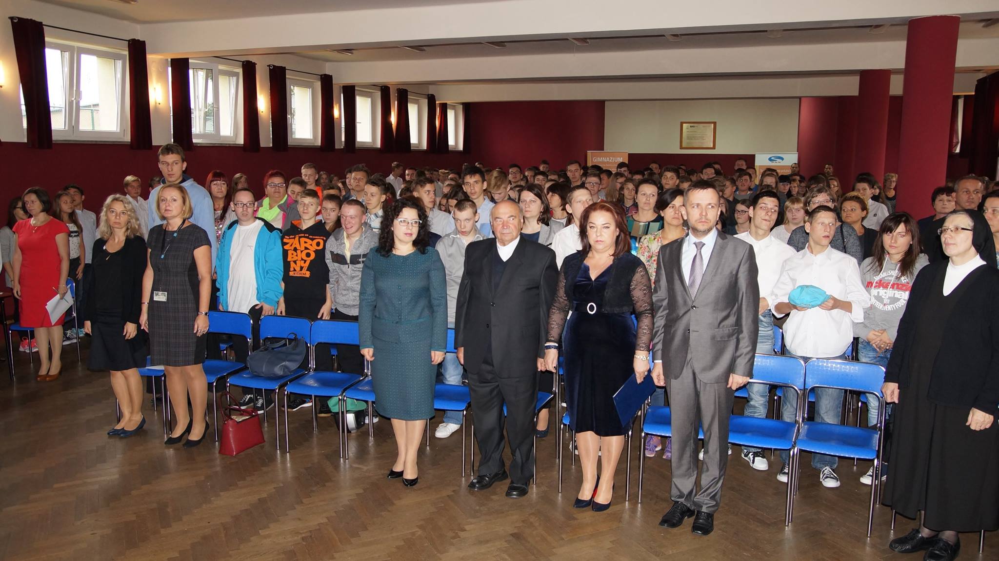 Były zabawne quizy i test wiedzy o Gimnazjum, następnie uczniowie złożyli uroczyste ślubowania i zostali pasowani przez Panią Dyrektor Lillę Salachnę-Brzoznę i wicedyrektora Waldemara Krzyśka na gimnazjalistę. Uroczystość odbyła się w Gimnazjum im. Powstańców Śląskich w Strumieniu. W uroczystości wśród zaproszonych gości brała udział Burmistrz Strumienia Anna Grygierek.