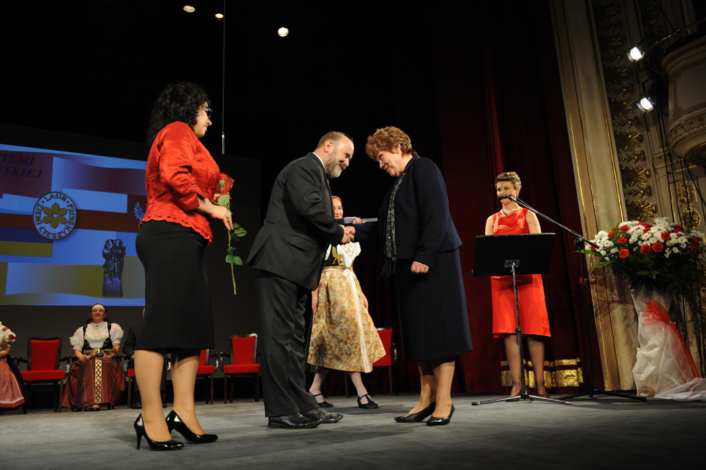 Tegoroczna Uroczysta Sesja Samorządów Ziemi Cieszyńskiej za nami. Tradycyjnie 11 listopada samorządy Ziemi Cieszyńskiej spotkały się w cieszyńskim Teatrze im. Adama Mickiewicza, aby podczas ceremonii wręczenia Laurów Ziemi Cieszyńskiej uhonorować najwybitniejsze postacie naszego regionu. Każda gmina uchwałą Rady Gminy wytypuje swojego laureata. Tegorocznym nagrodzoną ze Strumienia była Pani Wanda Niemiec. Srebrną Cieszyniankę otrzymała za znaczący wkład w kultywowanie i rozwijanie idei harcerstwa, za propagowanie teatru, kultywowanie gwary cieszyńskiej jej zwyczajów i tradycji. Uroczyście wręczyli ją Anna Grygierek, Burmistrz Strumienia i Czesław Greń, Przewodniczący Rady Miejskiej w Strumieniu.