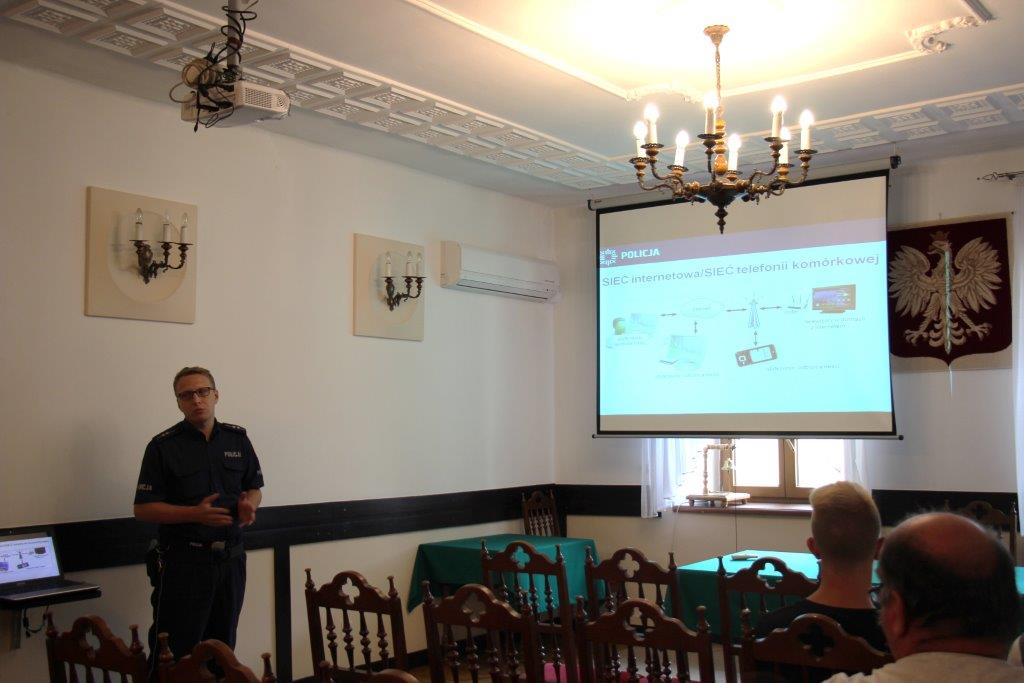 Prelekcję uwrażliwiającą na specyfikę problemu cyberprzemocy poprowadził asp. Tomasz Pszczółka z Komendy Powiatowej Policji w Cieszynie. Prelekcja odbyła się w Urzędzie Miejskim w Strumieniu.