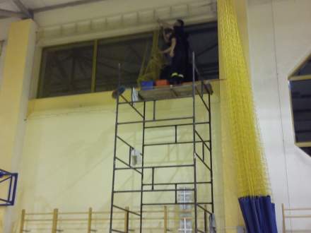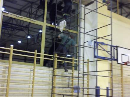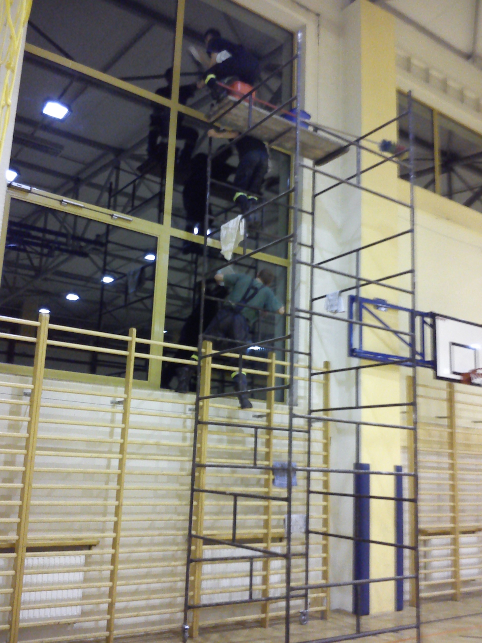 Z piątku na sobotę strażacy z OSP w Strumieniu: Jacek Jagieła, Marcin Indyk i Sławomir Pilch w ramach ćwiczeń wysokościowych umyli wszystkie okna w Hali Sportowej. Mycie i zawieszenie siatek ochronnych trwało ponad 8 godzin. Kierownictwo obiektu serdecznie dziękuje za wykonana pracę.