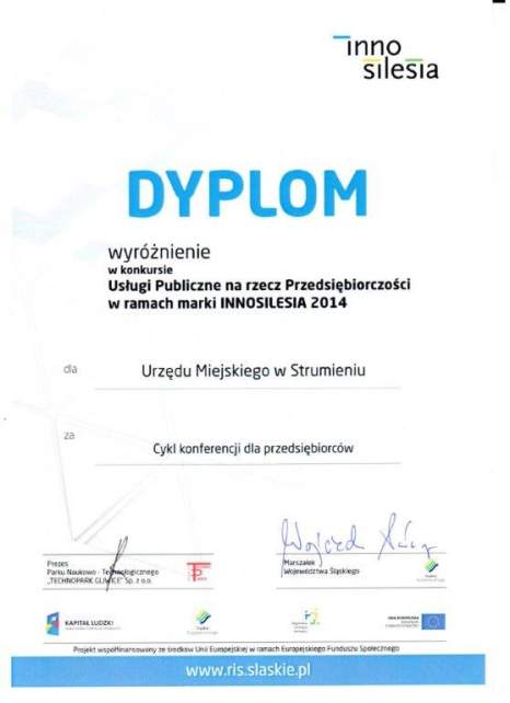 Urząd Miejski w Strumieniu wziął udział w konkursie zdobywając wyróżnienie za zorganizowanie cyklu konferencji dla przedsiębiorców w ramach konkursu „Usługi Publiczne na rzecz Przedsiębiorczości”.  Nagrodzono również Urząd Miejski w Zabrzu za utworzenie nowej siedziby Zabrzańskiego Centrum Przedsiębiorczości. Pierwsze miejsce i główną nagrodę Kapituła przyznała Wodociągom Siemianowickim Aqua-Sprint Sp. z o.o. za wprowadzenie elektronicznej kompleksowej obsługi klienta.