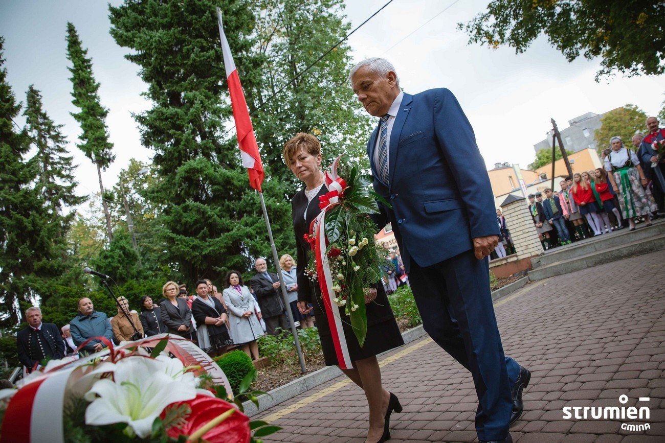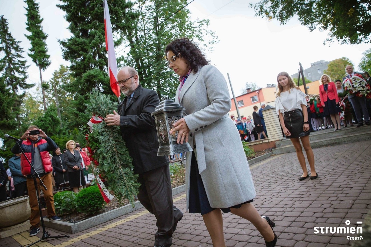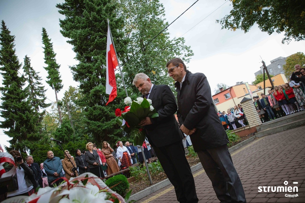 Odczytany został apel pamięci, do którego bohaterskich powstańców przywołał Druh Michał Pałubicki. Po apelu kwiaty pod tablicą złożyli: Burmistrz Strumienia Anna Grygierek i Przewodniczący Rady Miejskiej Czesław Greń, Wicemarszałek Województwa Śląskiego Beata Białowąs, Dyrektor Szkoły Podstawowej w Strumieniu Beta Greń oraz zaproszeni goście.