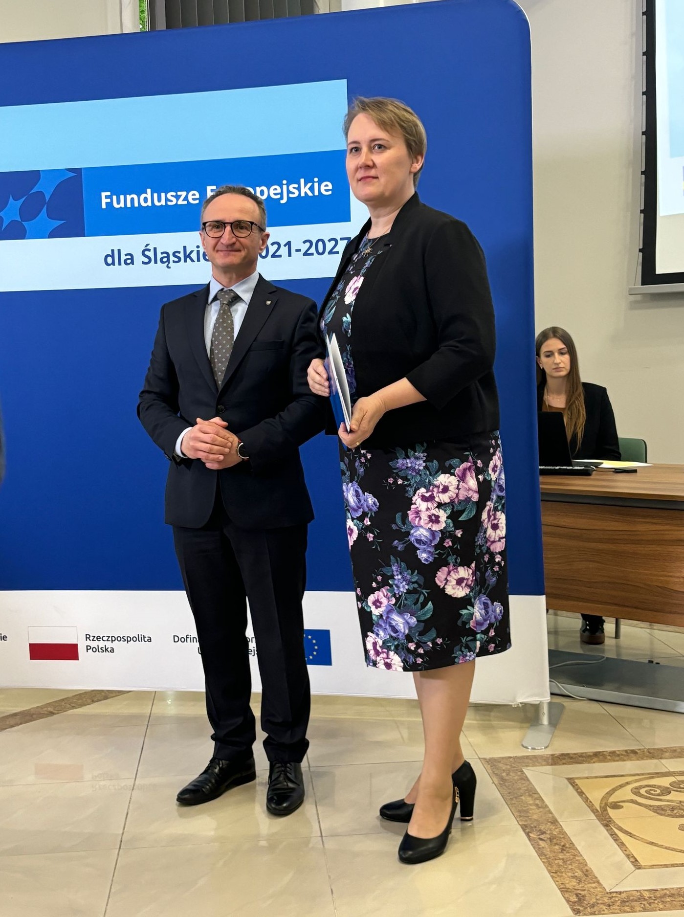 w Sali Kolumnowej Urzędu Marszałkowskiego Województwa Śląskiego w Katowicach odbyło się uroczyste wręczenie listów gratulacyjnych dla beneficjentów Programu Fundusze Europejskie dla Śląskiego 2021–2027.