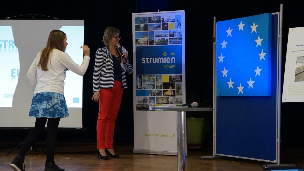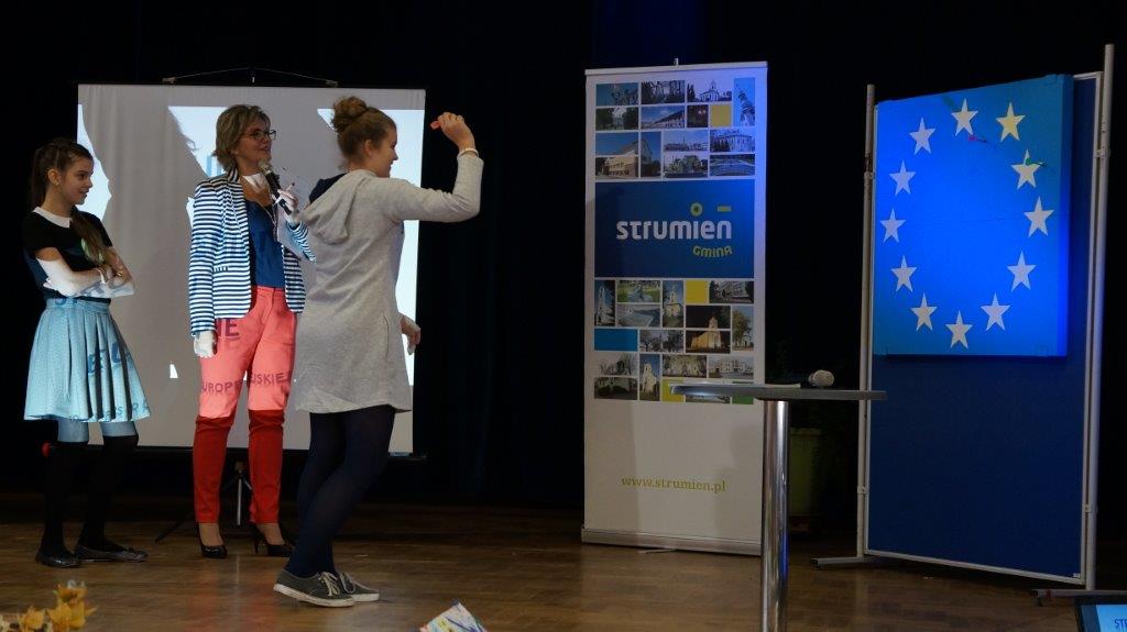 Do konkursu przystąpiło 10 drużyn. Rywalizacja przebiegała w dwóch kategoriach: Szkoły Podstawowe i Gimnazja. Każdy zespół musiał odpowiedzieć na trzy pytania o różnym stopniu trudności. Dodatkowo uczniowie ze Szkół Podstawowych oprócz wiedzy musieli wykazać się celnością w rzutach, prezentowali również makiety inwestycji, które ich zdaniem powinny w przyszłości być zrealizowane w gminie Strumień. Uczniowie Gimnazjum przygotowali filmy pt. „Przez żołądek do serca Europy”. Wszystkie zespoły w tej konkurencji wykazały się niezwykłą pomysłowością. O ostatecznym wyniku konkursu zadecydowała Komisja Konkursowa w składzie: Maria Krutyła – Radna Rady Miejskiej w Strumieniu, Joanna Włoch- Dyrektor Zespołu Obsługi Szkół, Ewa Kuboszek-Owsiany – Kierownik Referat Rozwoju i Promocji Urzędu Miejskiego w Strumieniu, Teresa Pryczek- malarka ze Zbytkowa, oraz Sylwia Cieślar z Biura Posła do Parlamentu Europejskiego Jana Olbrychta. Nagrody uczestnikom wręczył Zastępca Burmistrza Strumienia Włodzimierz Cybulski.