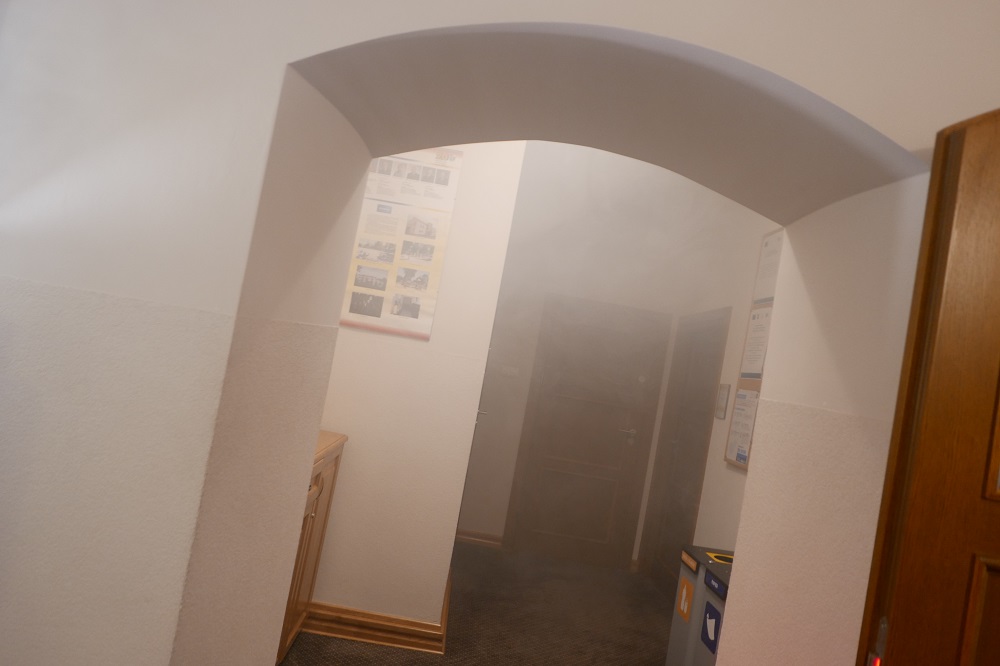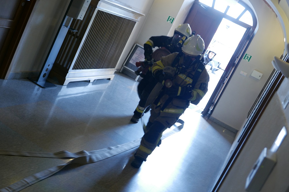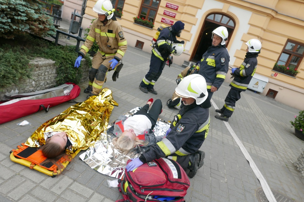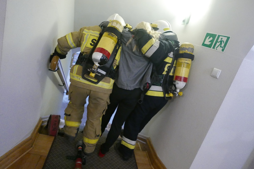 W dniu 24 maja br. w budynku Urzędu Miejskiego w Strumieniu przeprowadzono próbną ewakuację przeciwpożarową. W ćwiczeniach uczestniczył zastęp Ochotniczej Straży Pożarnej w Strumieniu. Scenariusz akcji zakładał zadymienie na klatce schodowej na pierwszym piętrze, które w całości zostało objęte ogniem, dodatkowo swobodnie rozprzestrzeniał się on po całej kondygnacji. Dwie osoby nie mogły opuścić budynku o własnych siłach.
